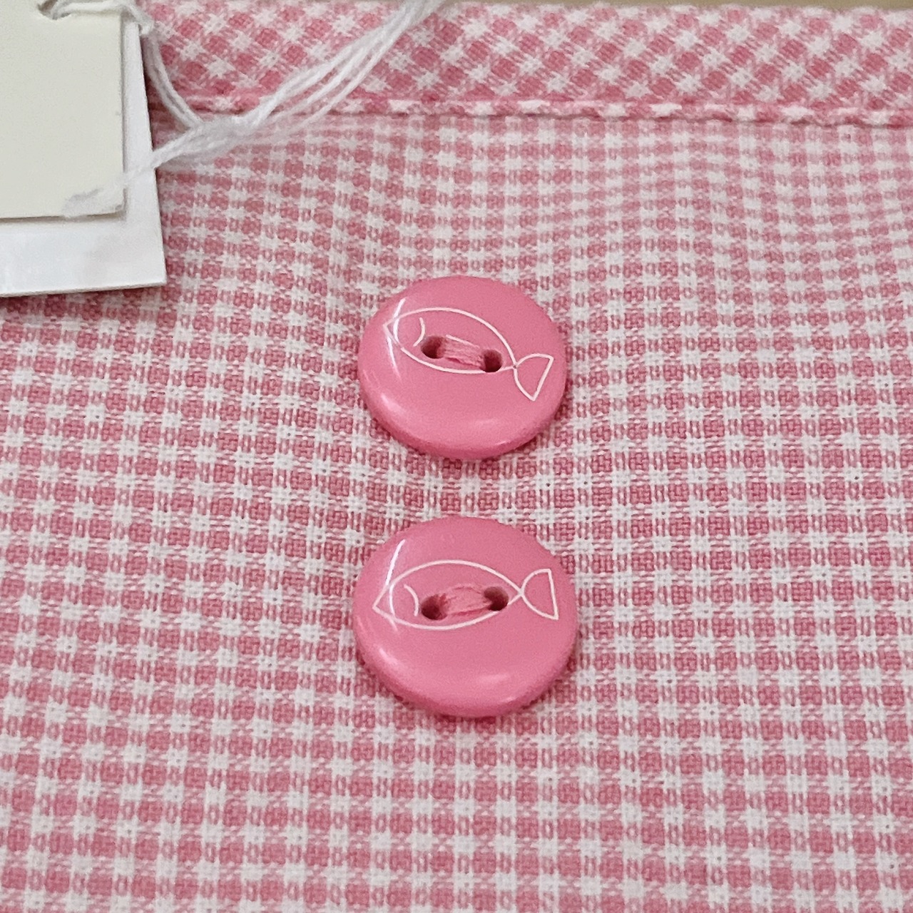 ボタン部分にはさりげなくおさかな柄があしらわれており、細部までかわいらしさのある作りです。