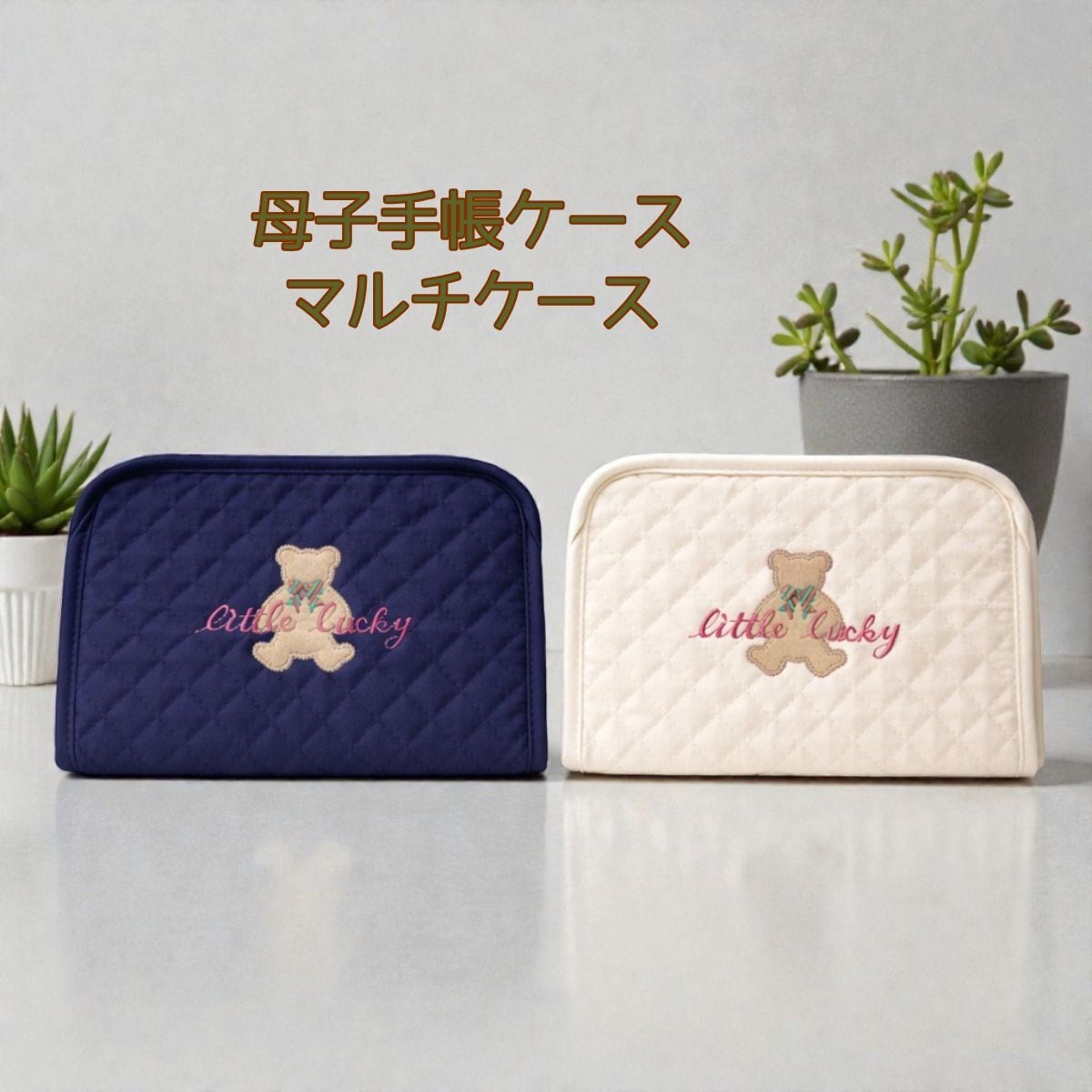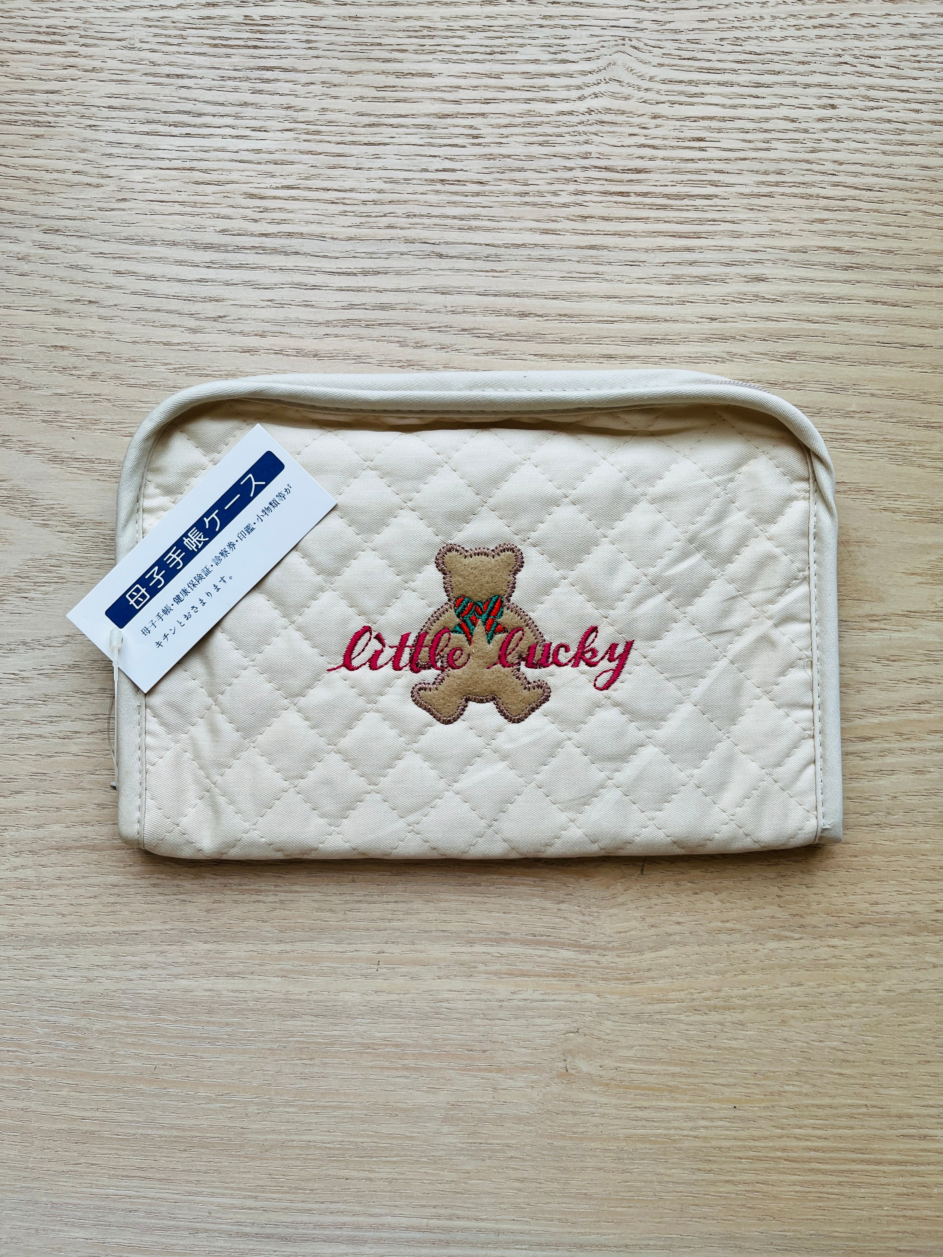 日本製 母子手帳ケース マルチケース キルティング くま刺繍 ファスナー付き 通帳ケース 診察券ケース ネイビー クリーム 2色展開