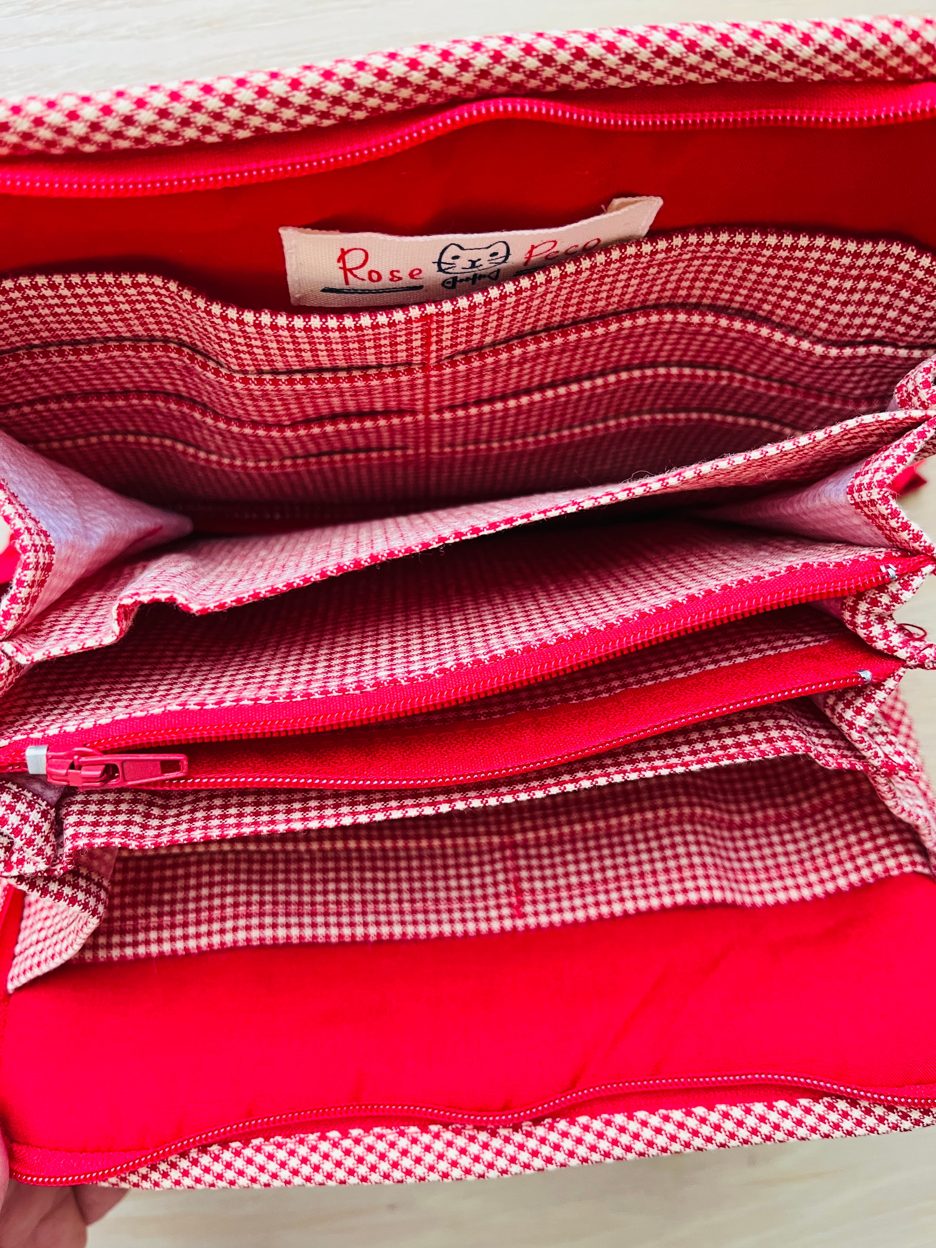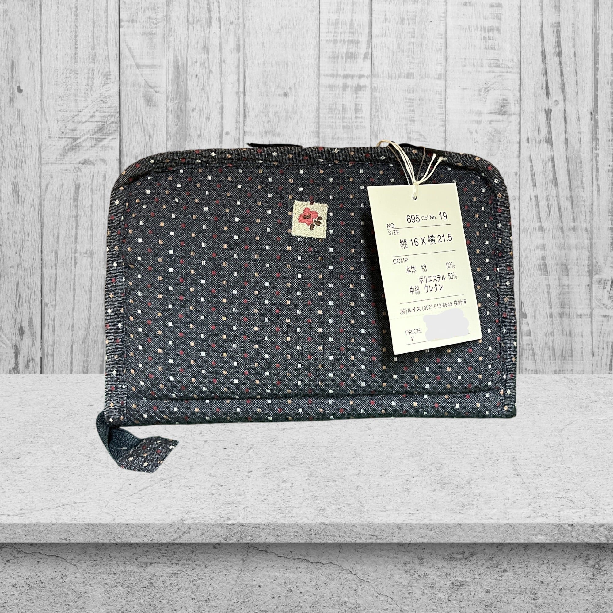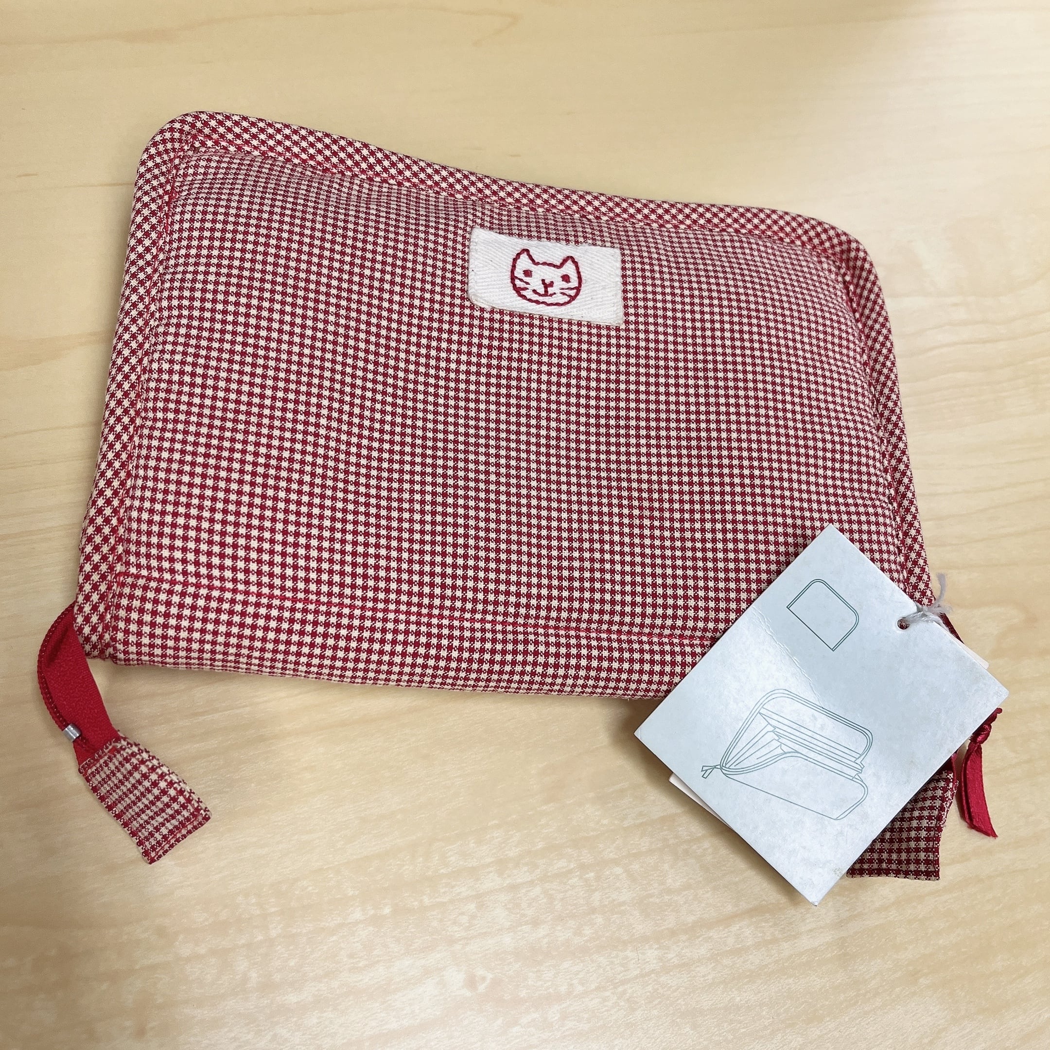 母子手帳ケース マルチケース ファスナー付き 通帳ケース カードケース 2色展開 赤 濃いグレー 小花柄 猫ワッペン キルティング 収納ケース 日本製風 ビンテージ調