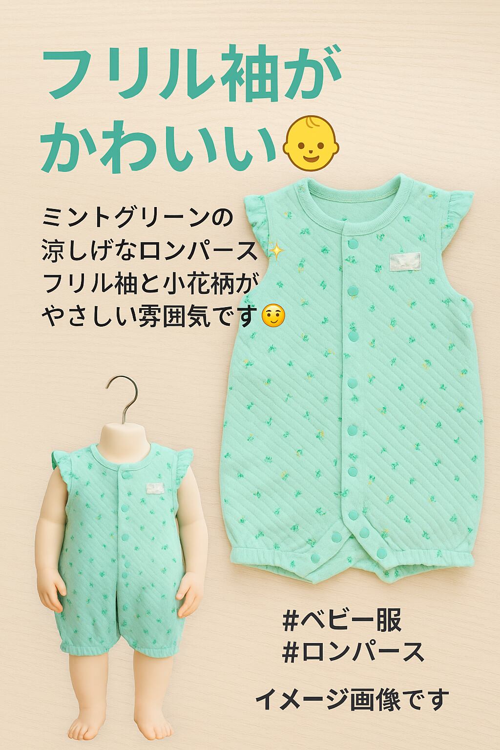 おしゃれで快適なこのロンパースは、普段使いだけでなく特別なお出かけにもぴったり!