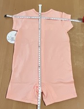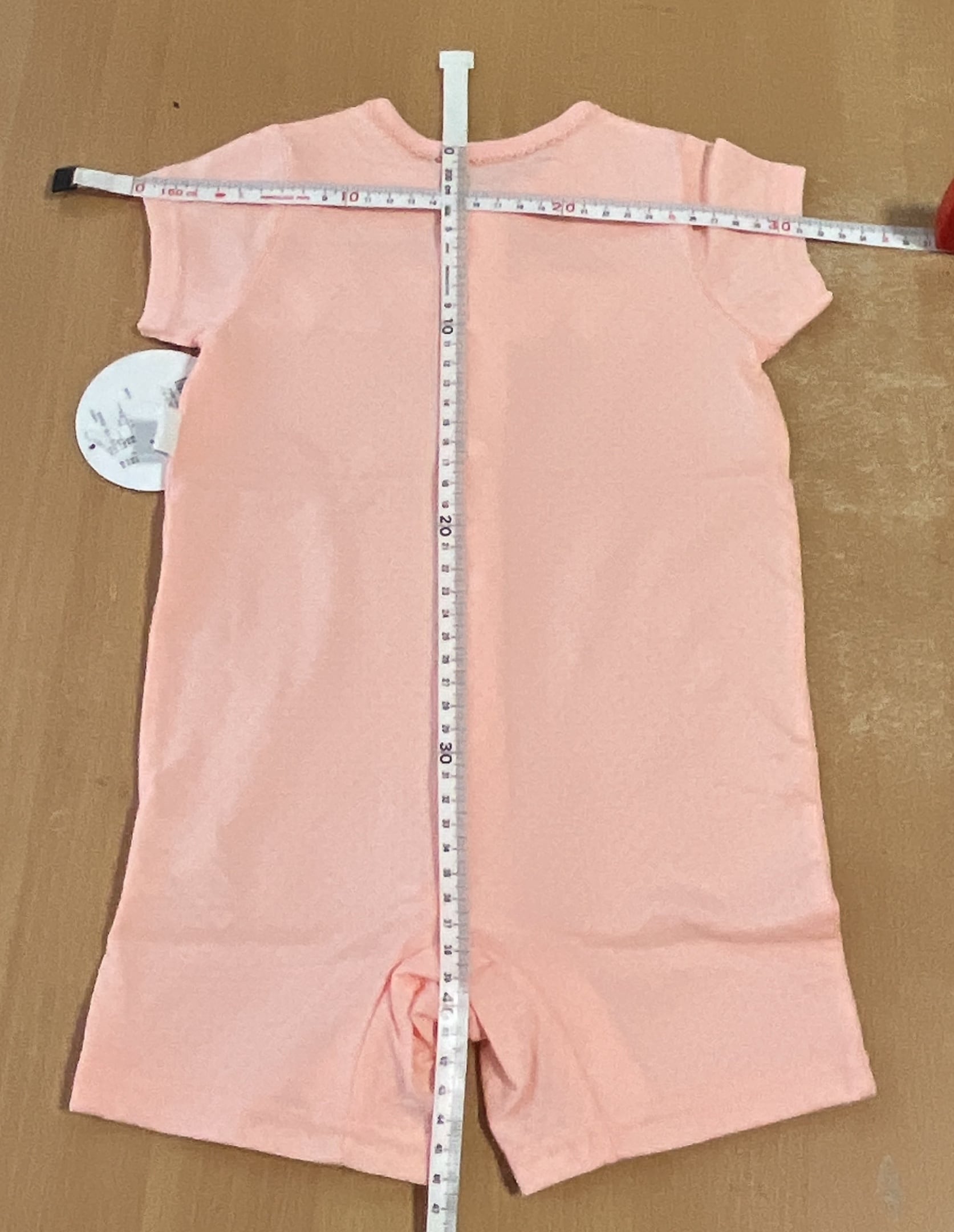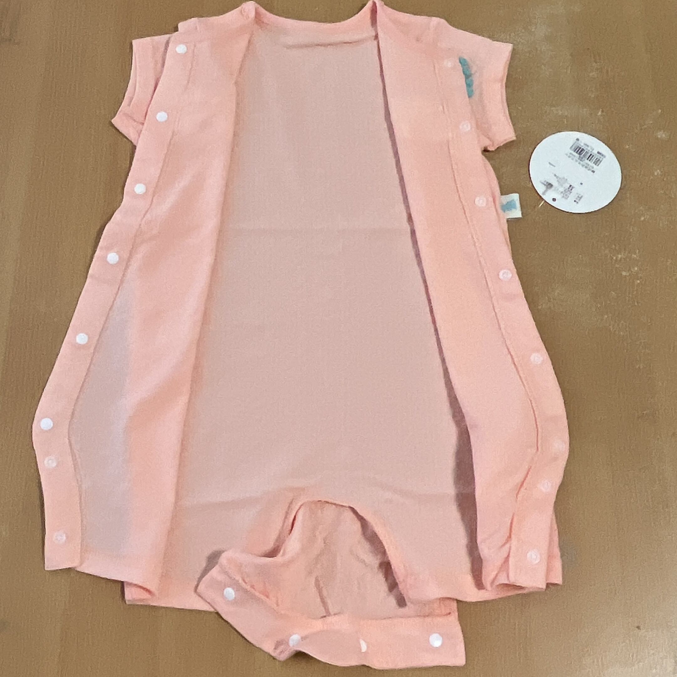股下にスナップボタンがついたつなぎタイプのベビー服で、Tシャツとショーツが一体化したようなデザイン。