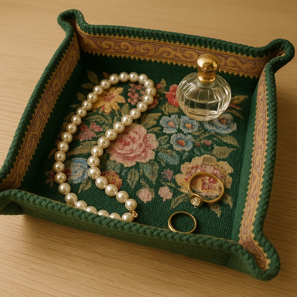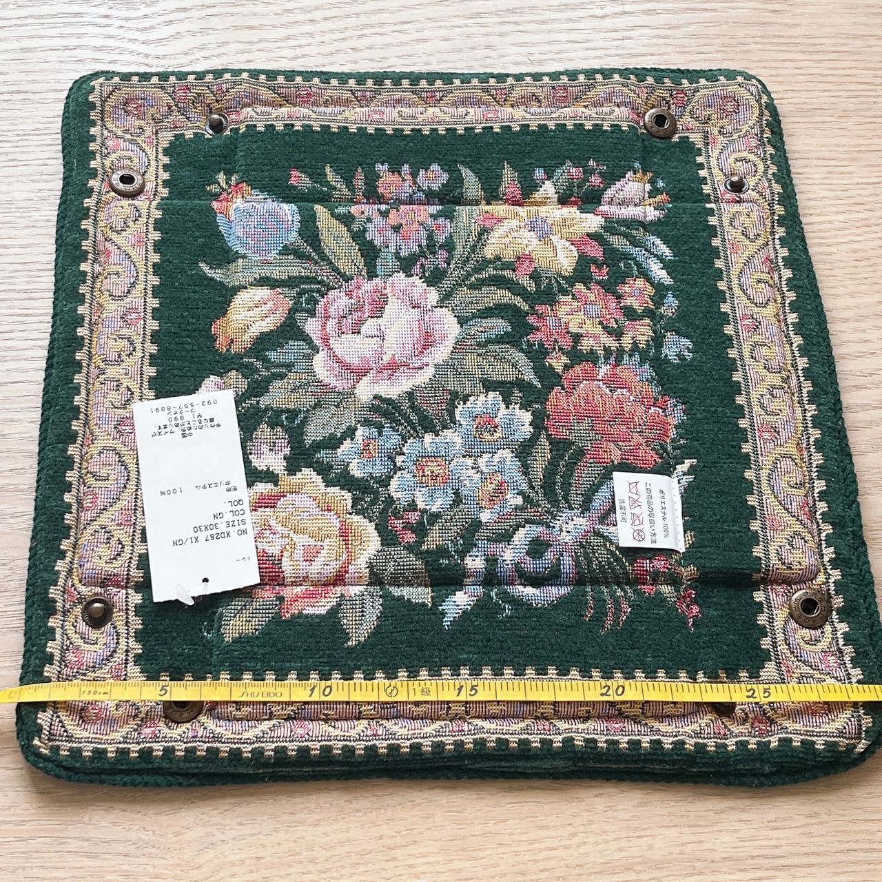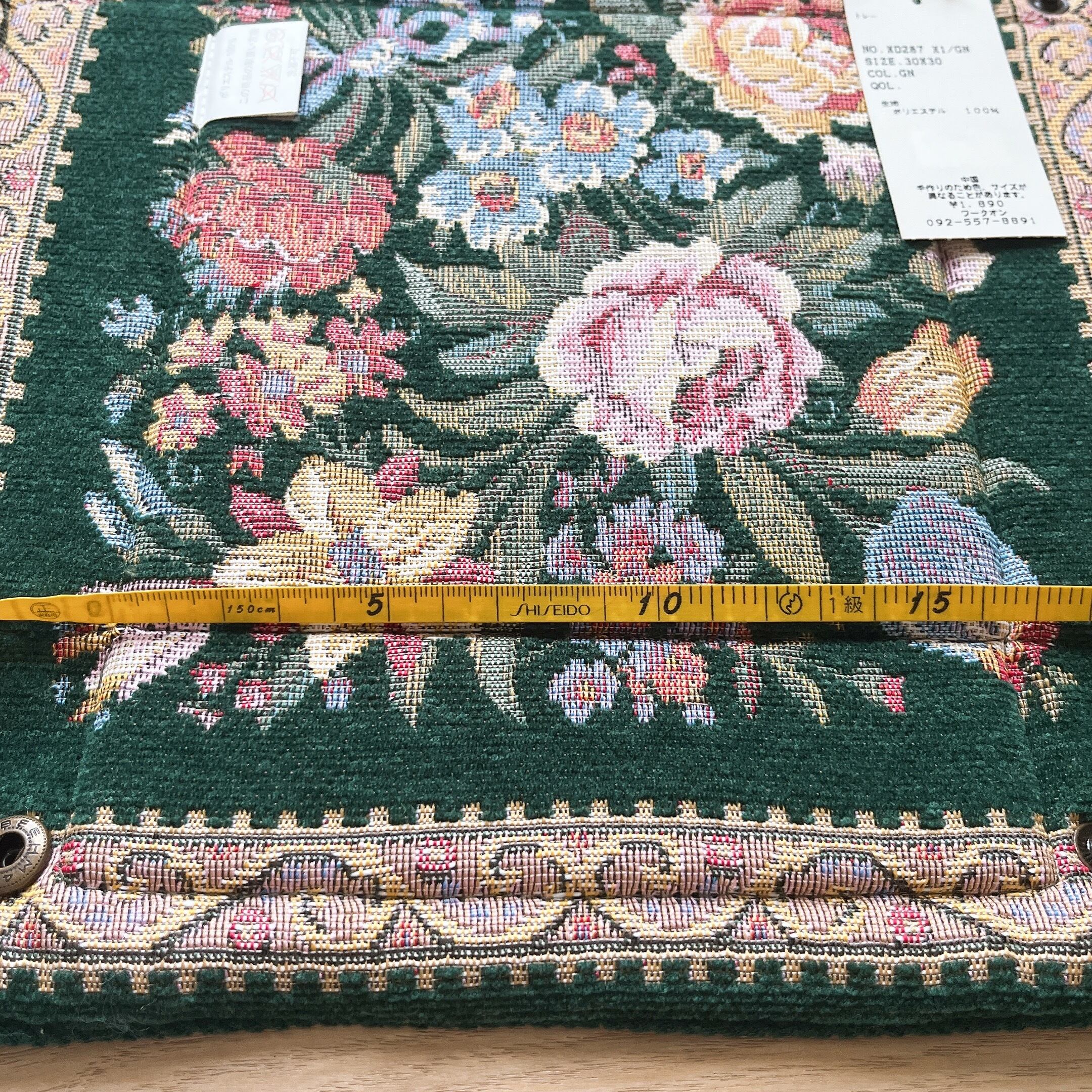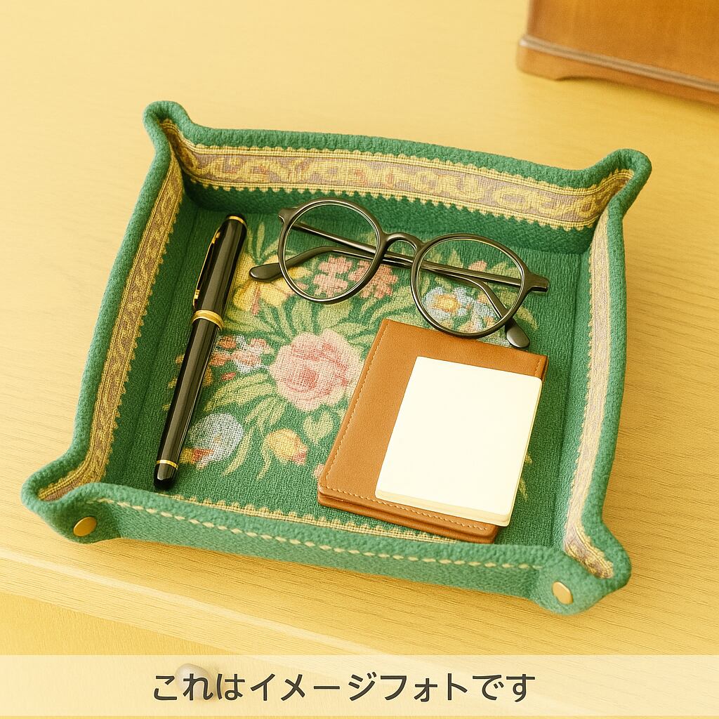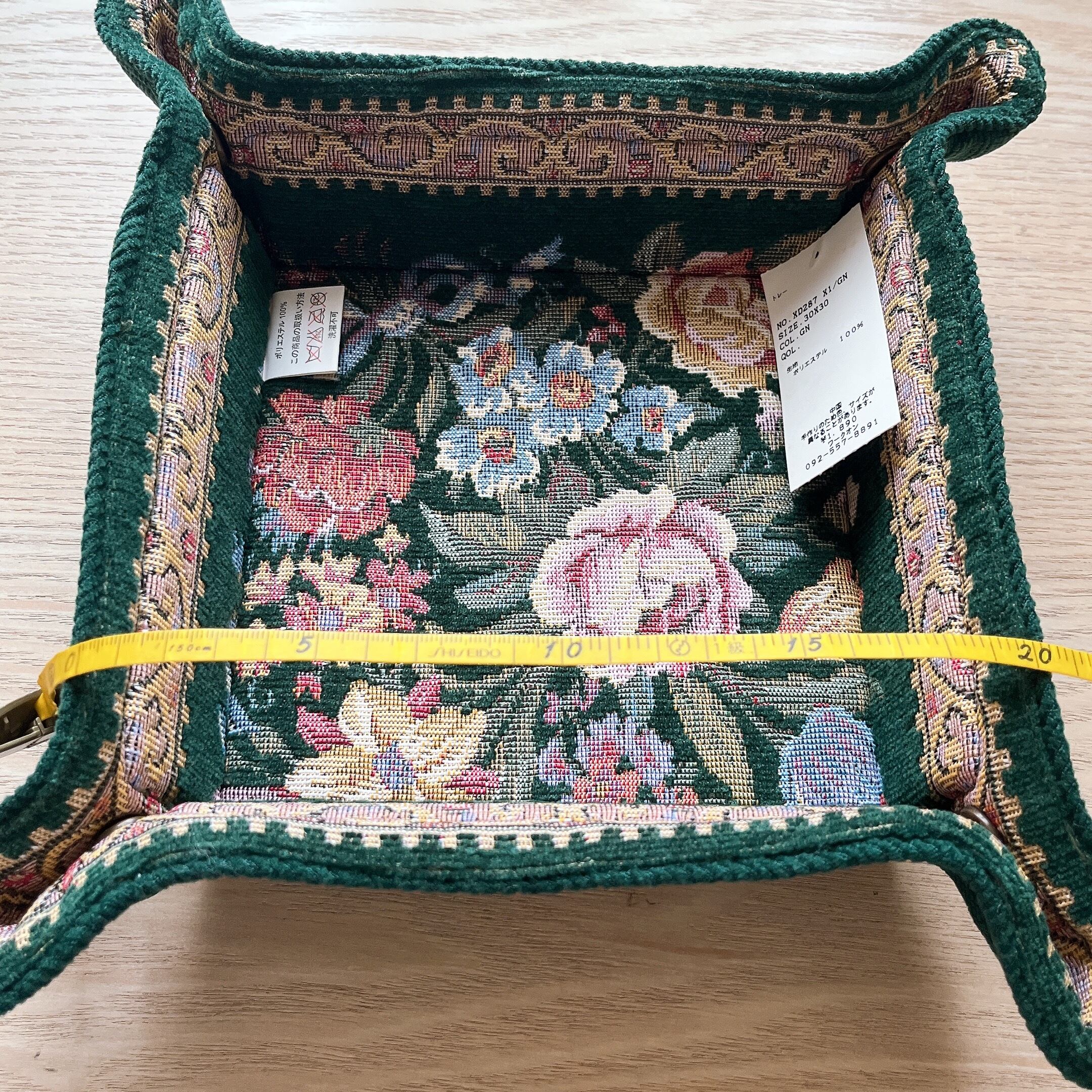 タグ付き ゴブラン織り スナップトレイ フラワー柄 ヨーロピアンアンティーク風 グリーン