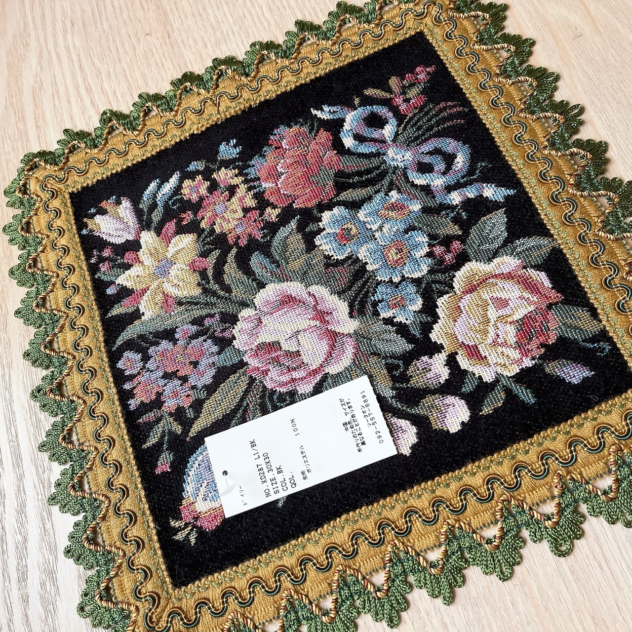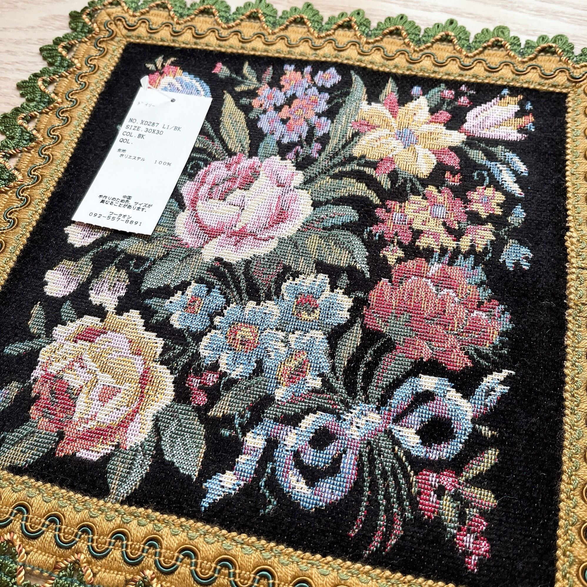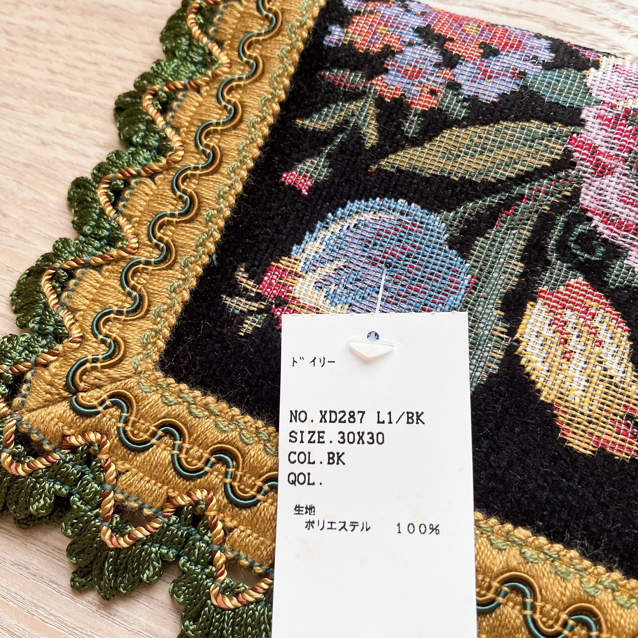 タグ付き ゴブラン織りフラワードイリー 黒/赤 ヨーロピアンアンティーク風 選べる2色