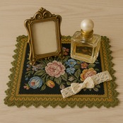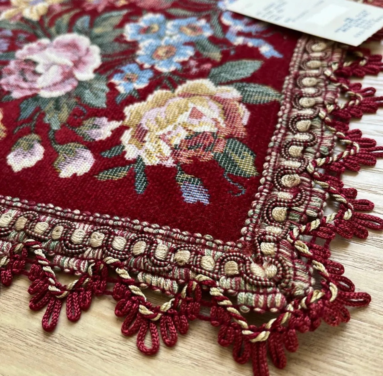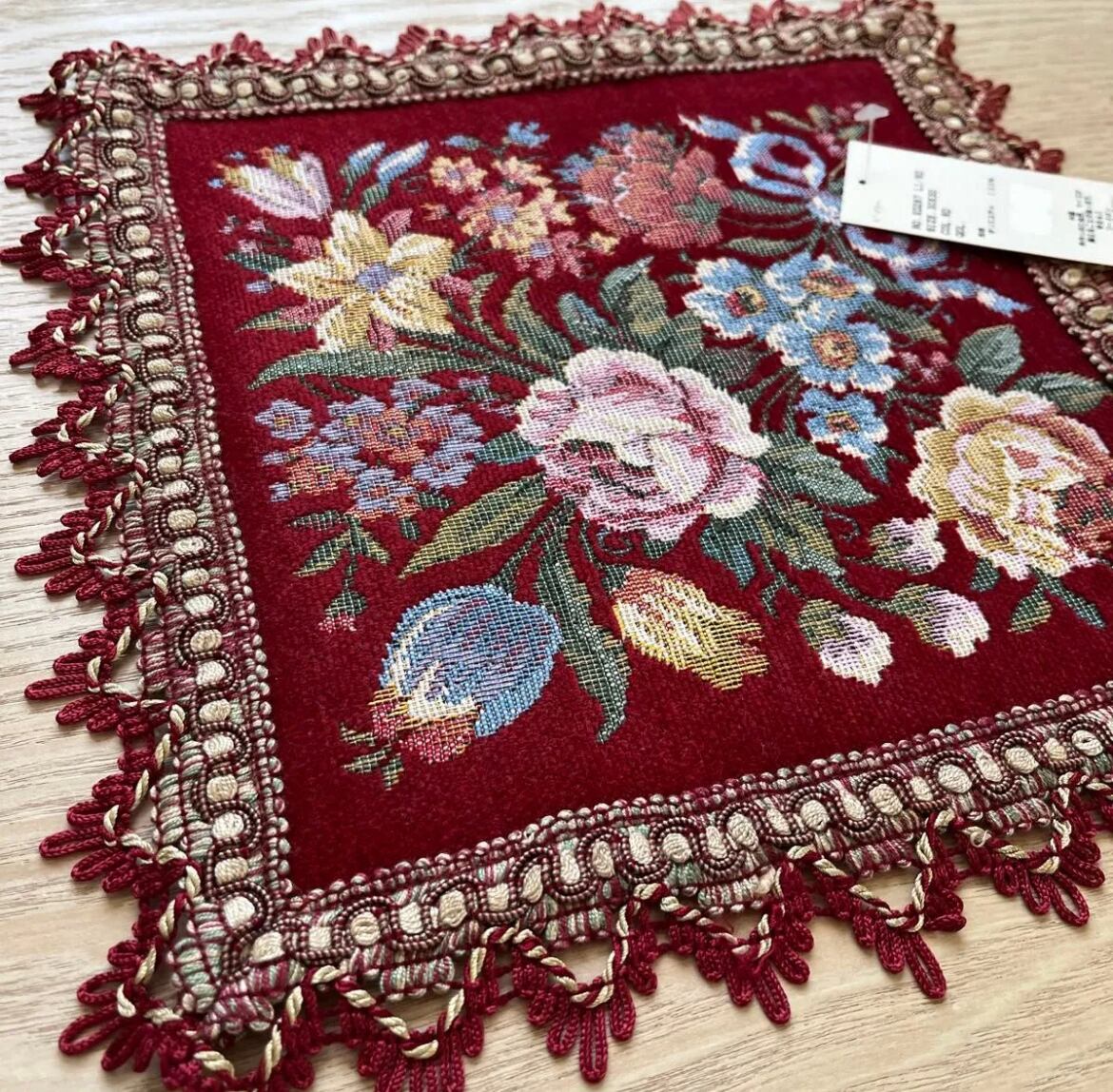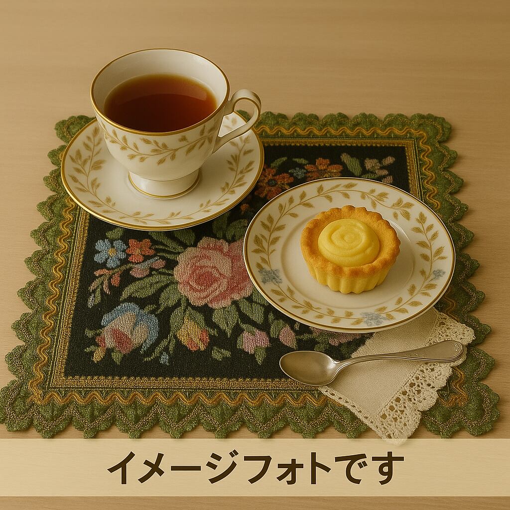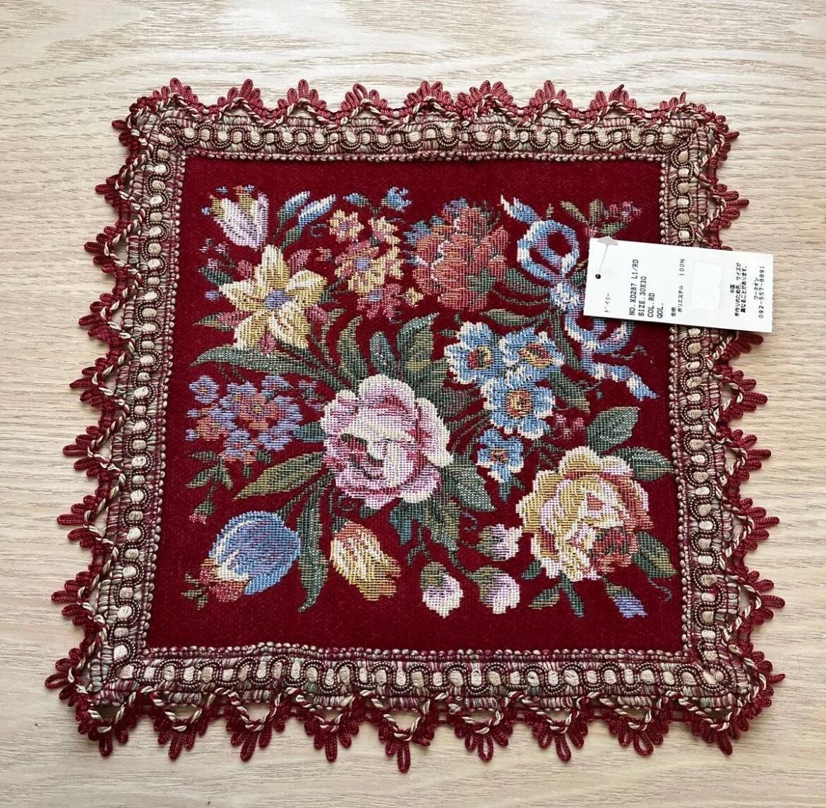タグ付き ゴブラン織りフラワードイリー 黒/赤 ヨーロピアンアンティーク風 選べる2色