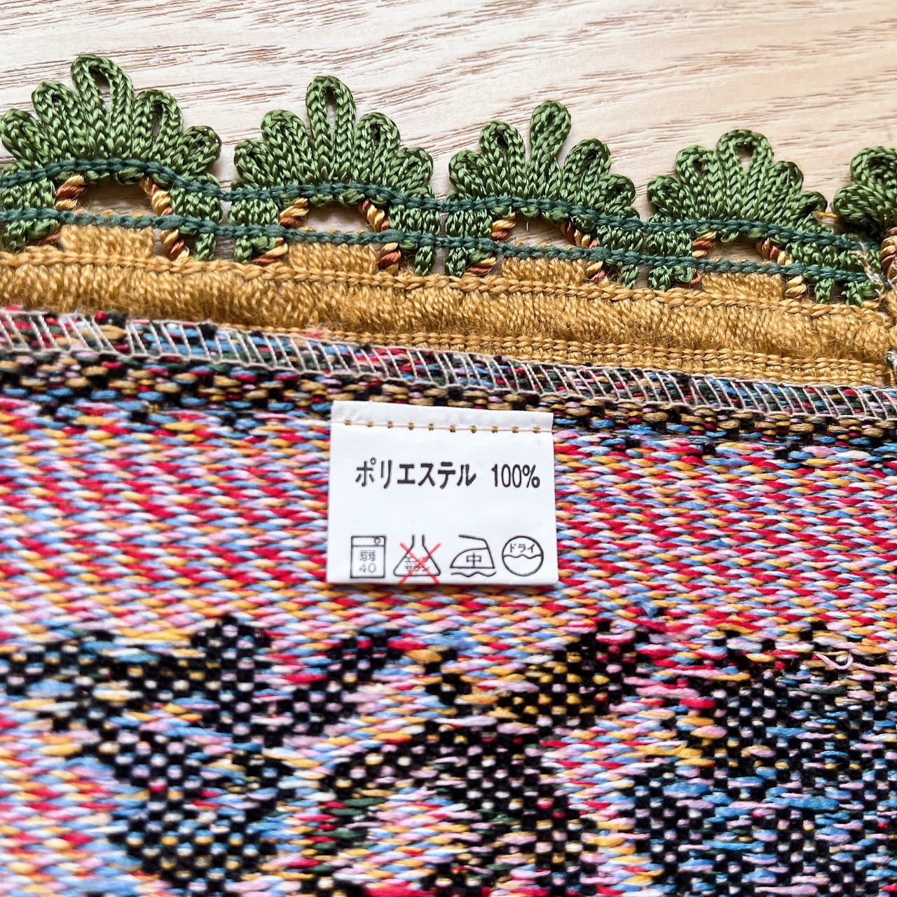 裏面には多色の糸が複雑に交差し、織物としての重厚な存在感を感じ取ることができます。