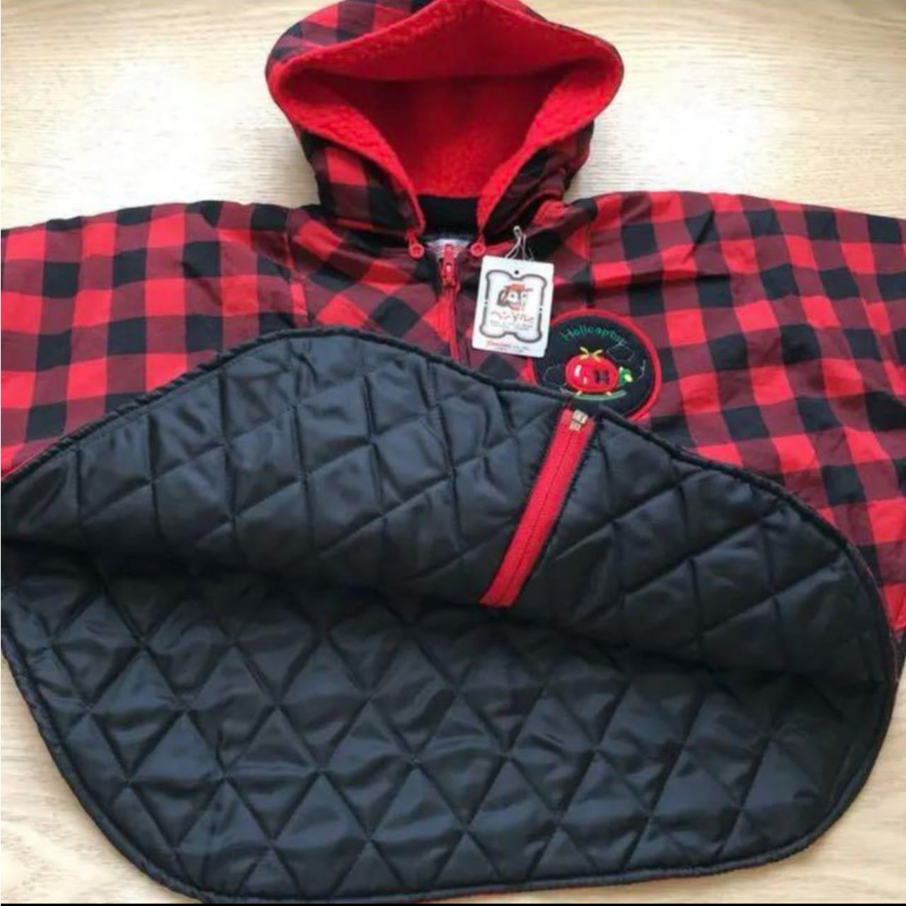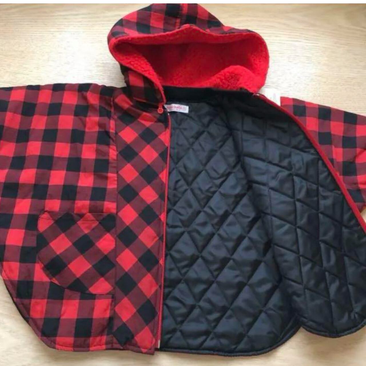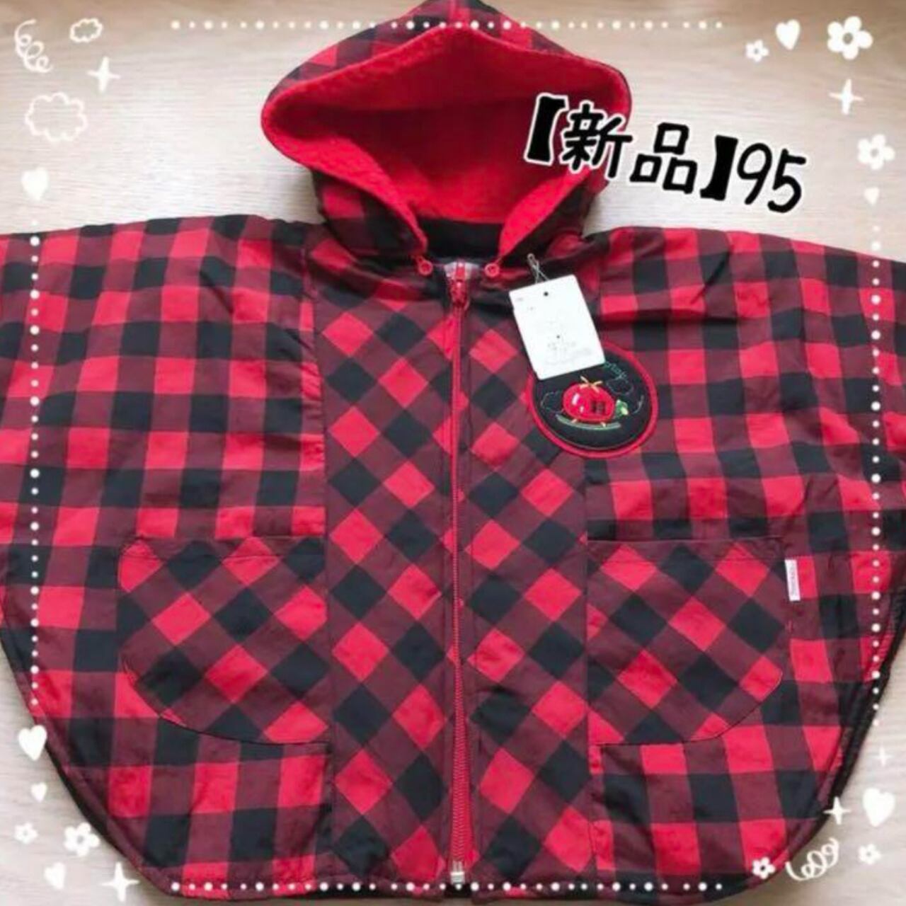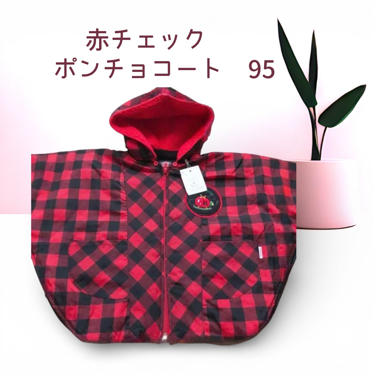 赤×黒チェックのフード付きポンチョ(ヘンケル)/95サイズ/新品タグ付き
