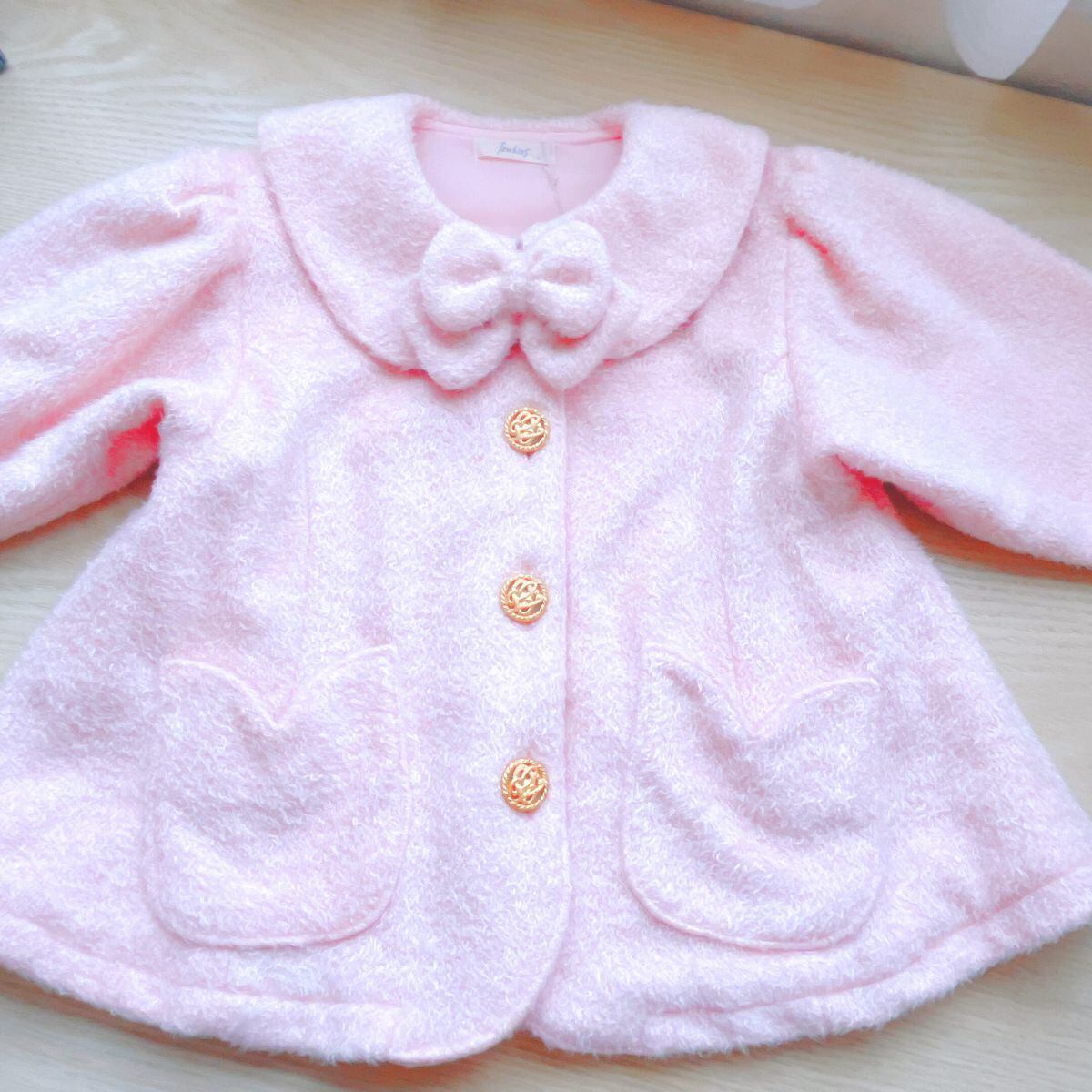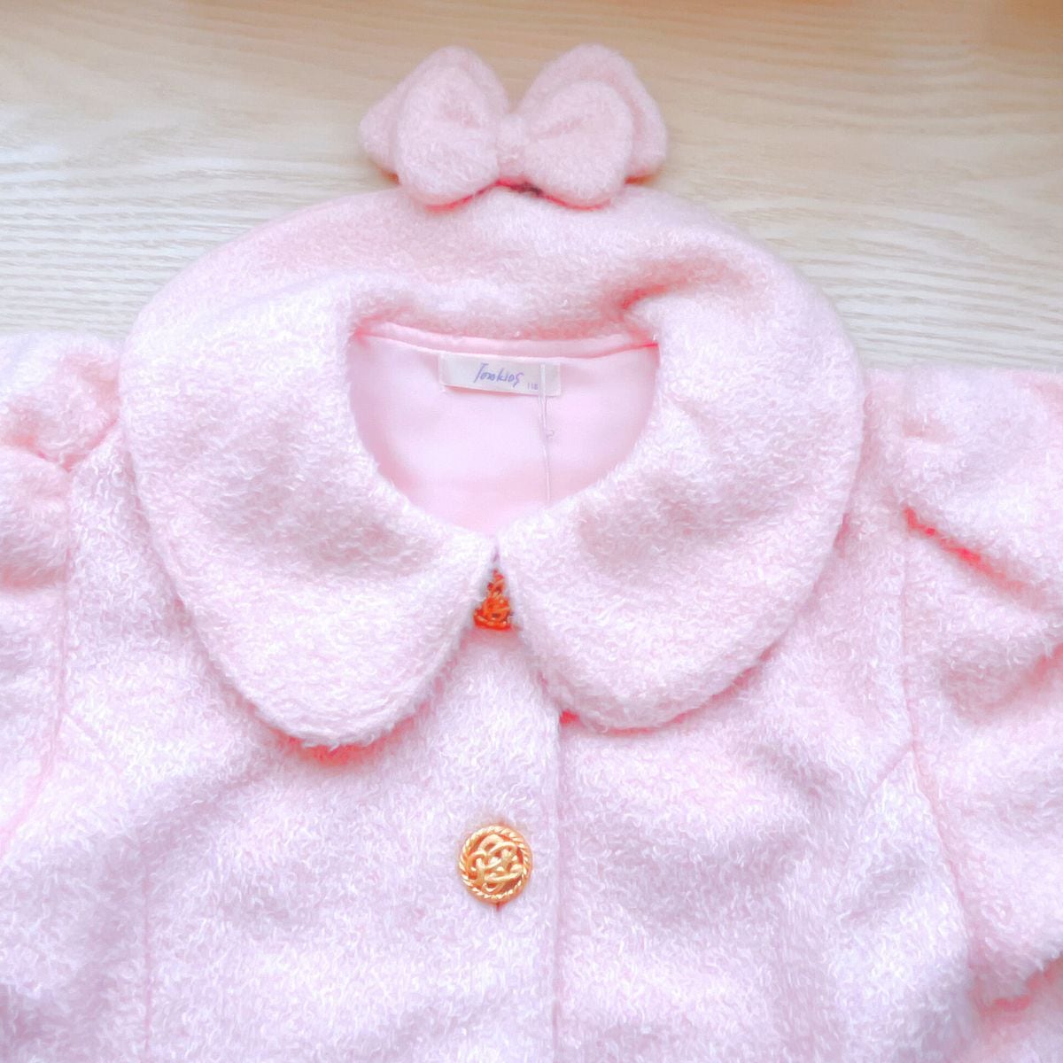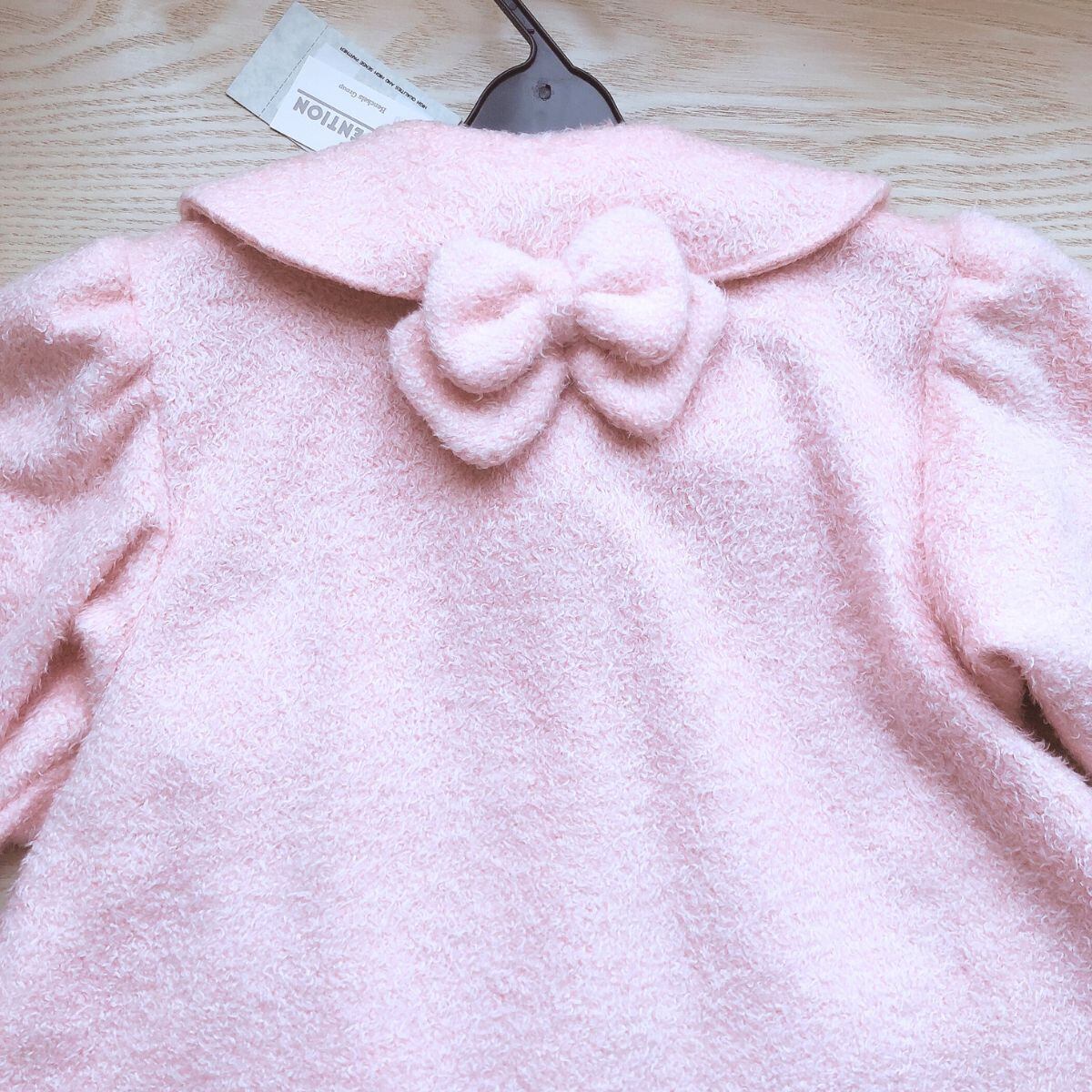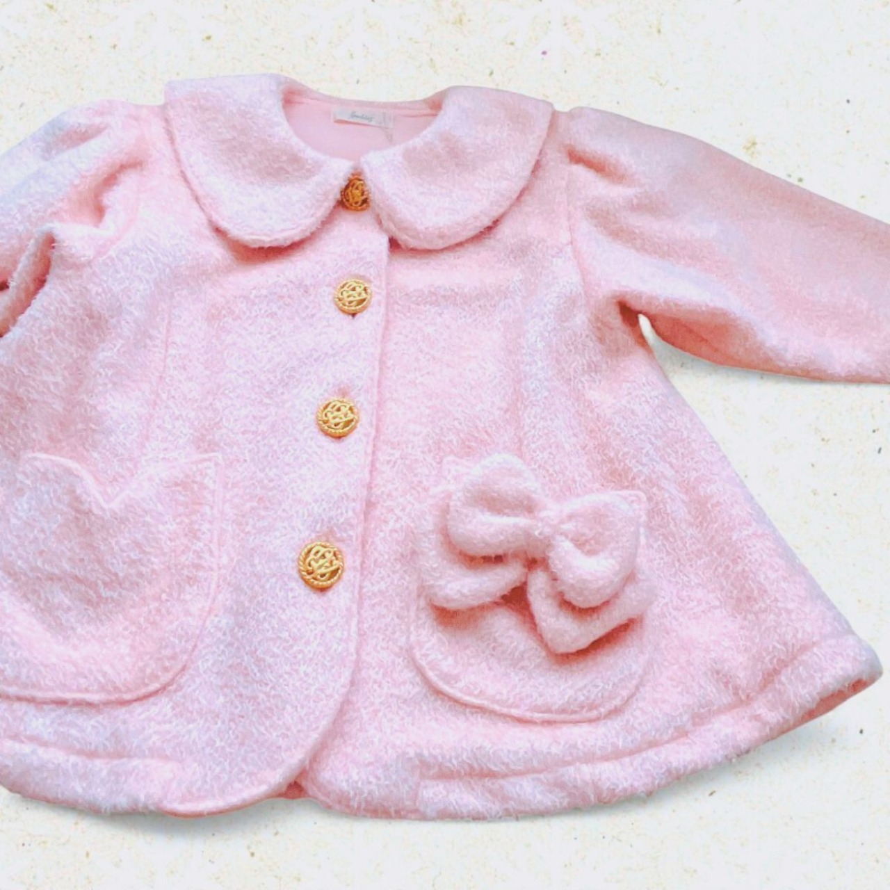 【昭和レトロ・新品未使用】ふわふわ裏地付き ピンク アウター/取り外しリボン付き/金ボタン/ガーリーコート/110・130サイズ(日本製)子ども服 冬 おめかし