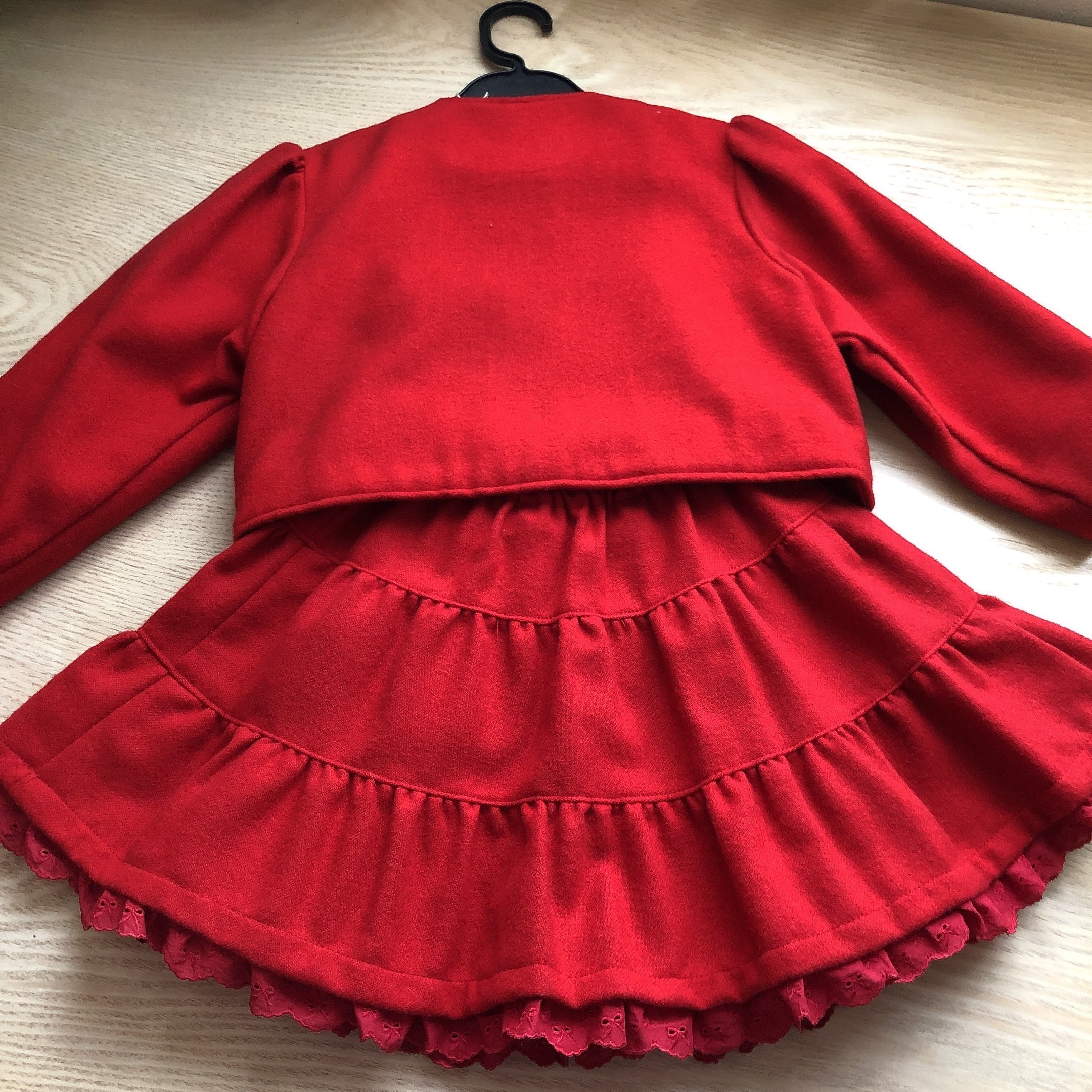 上品な赤が印象的な ボレロ+フレアスカートの上下セットアップ です。