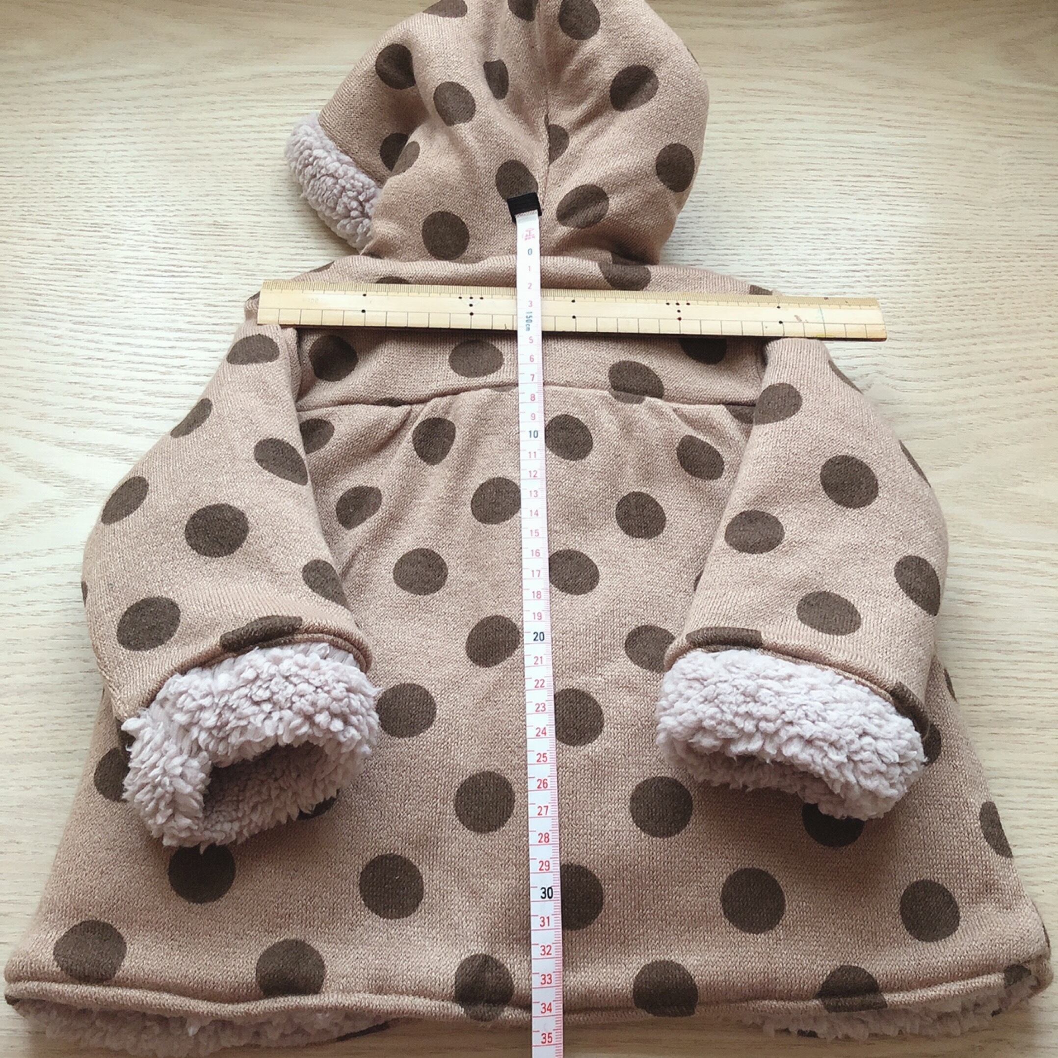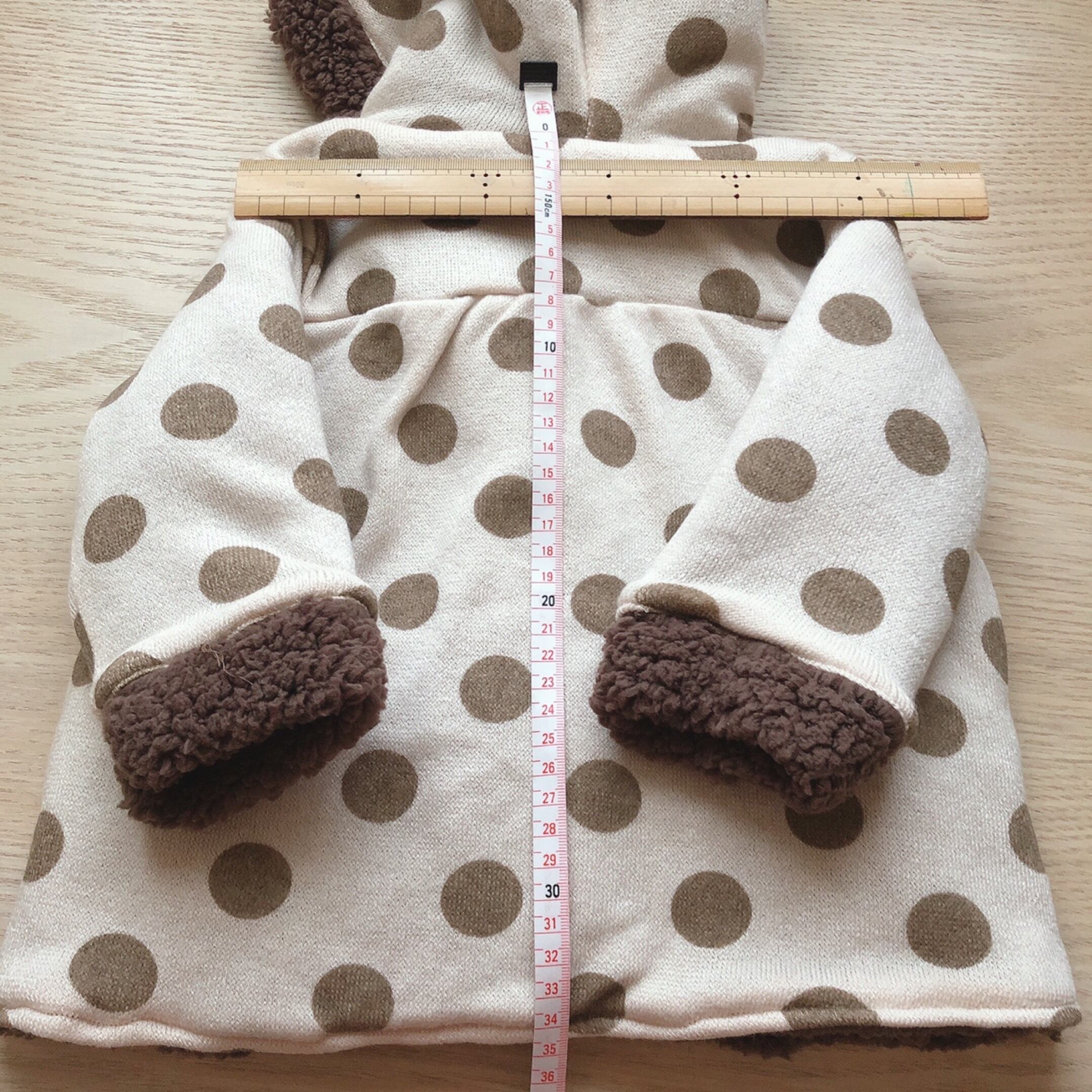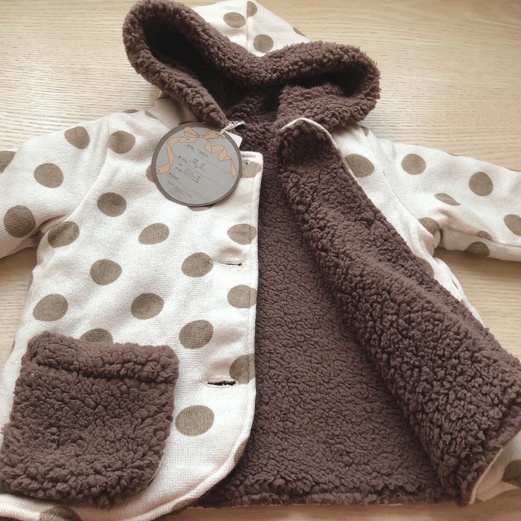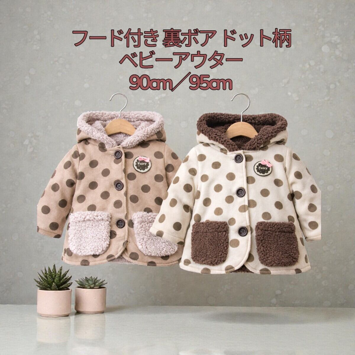 フード付き 裏ボア ドット柄 ベビーアウター 90cm/95cm ブラウン・オフホワイト もこもこ 防寒 上着 秋冬 ベビー服