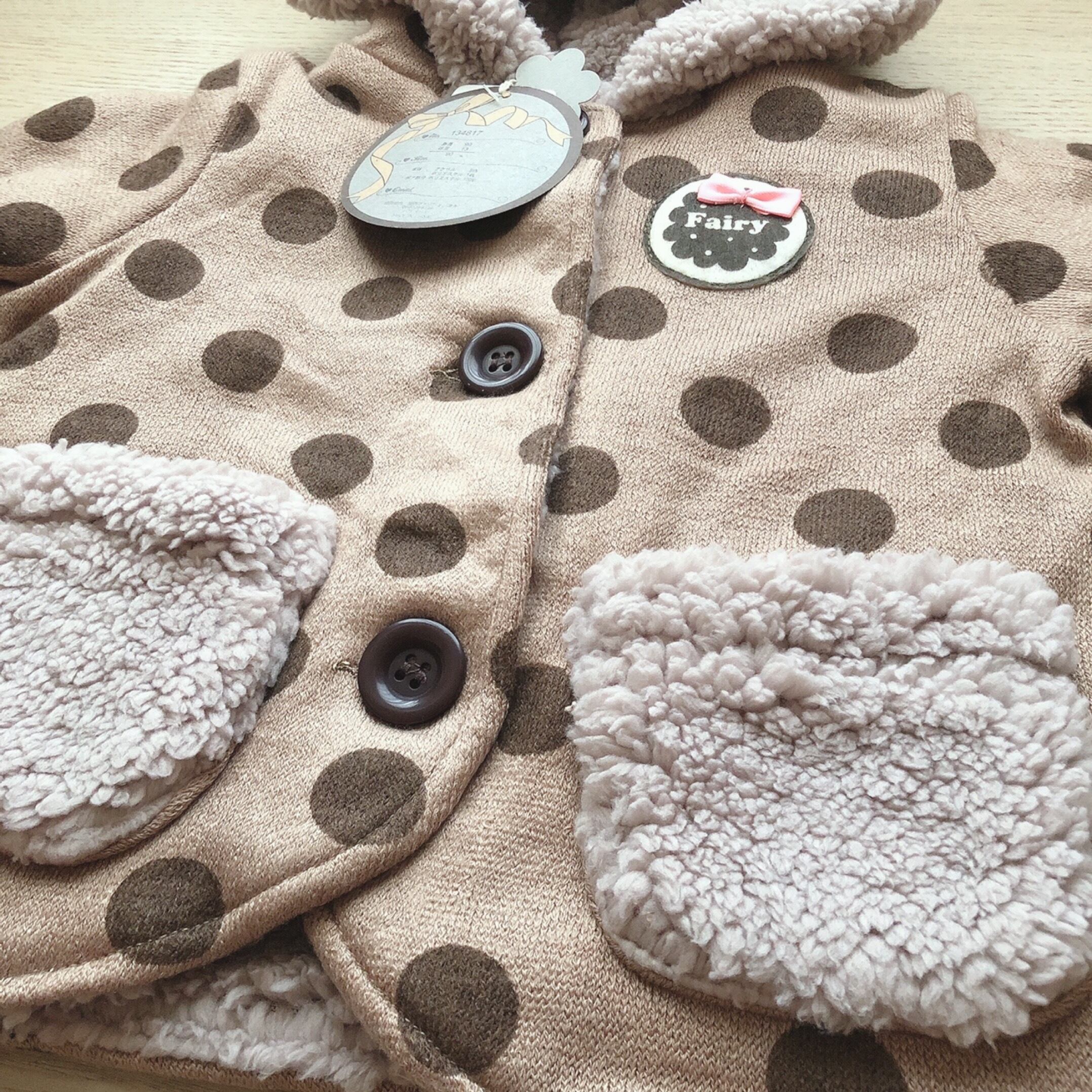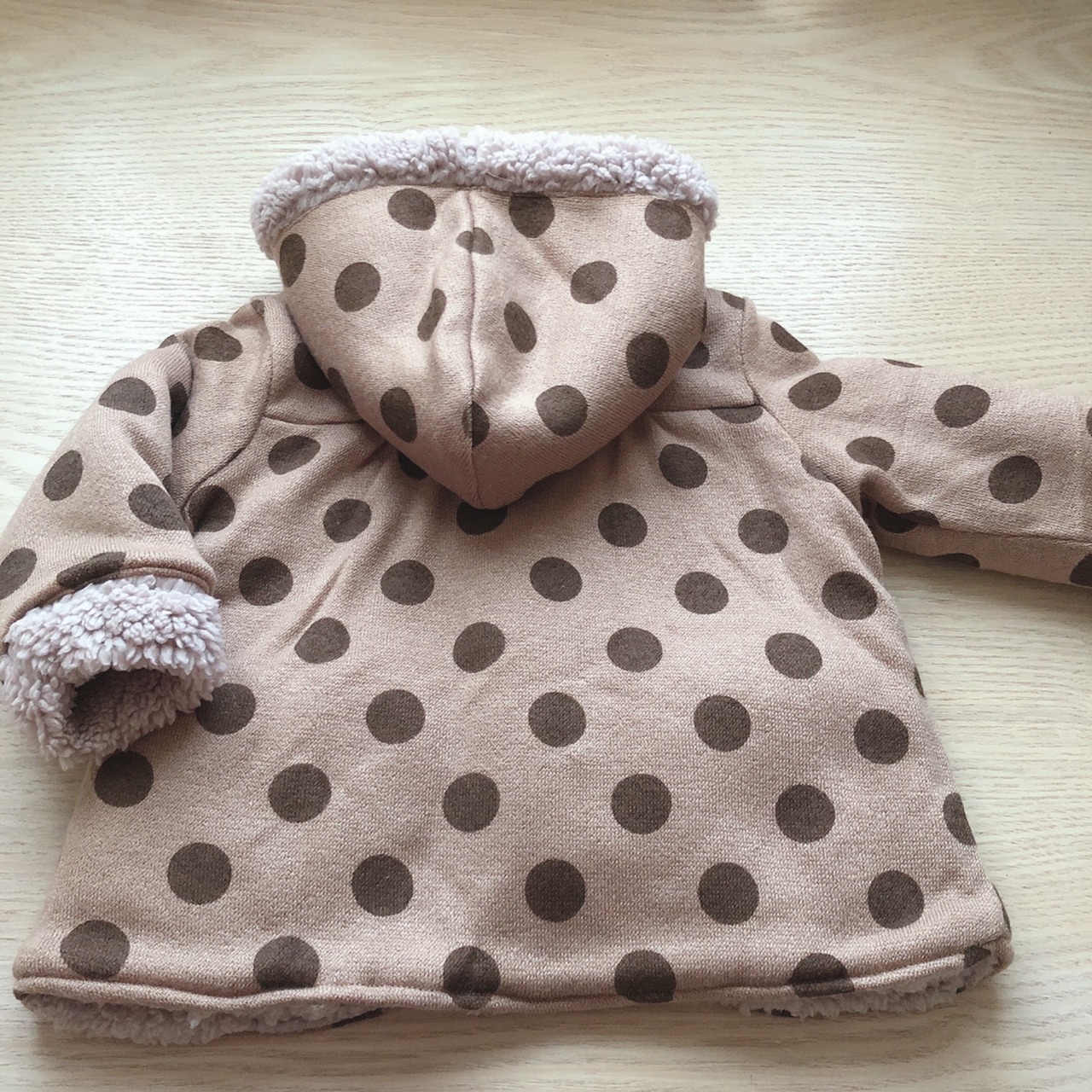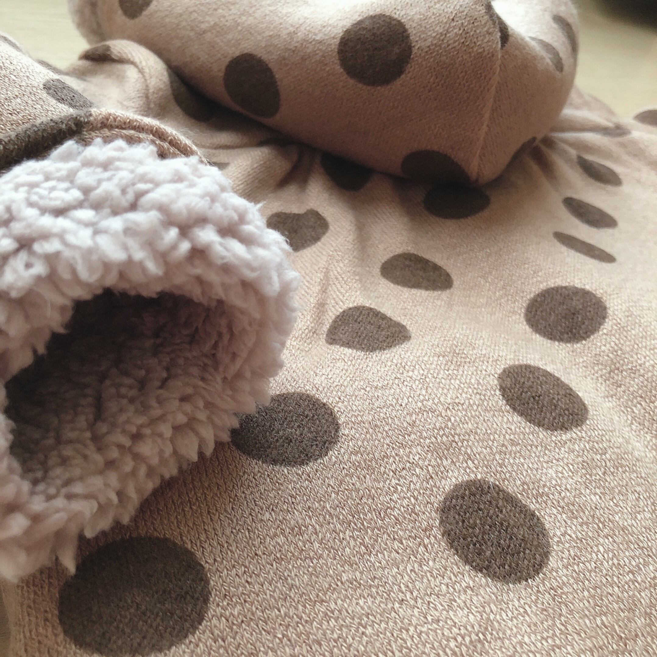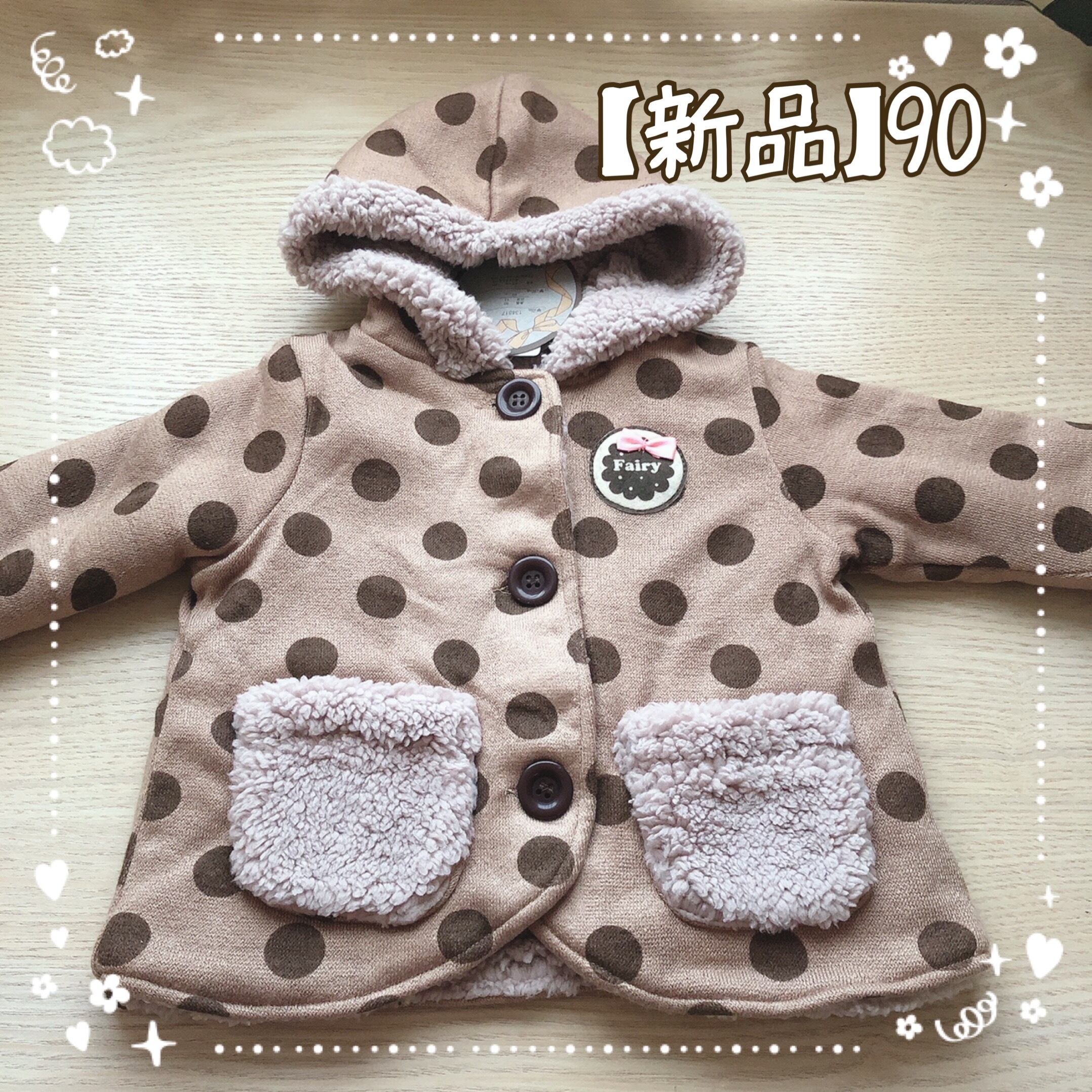 フード付き 裏ボア ドット柄 ベビーアウター 90cm/95cm ブラウン・オフホワイト もこもこ 防寒 上着 秋冬 ベビー服
