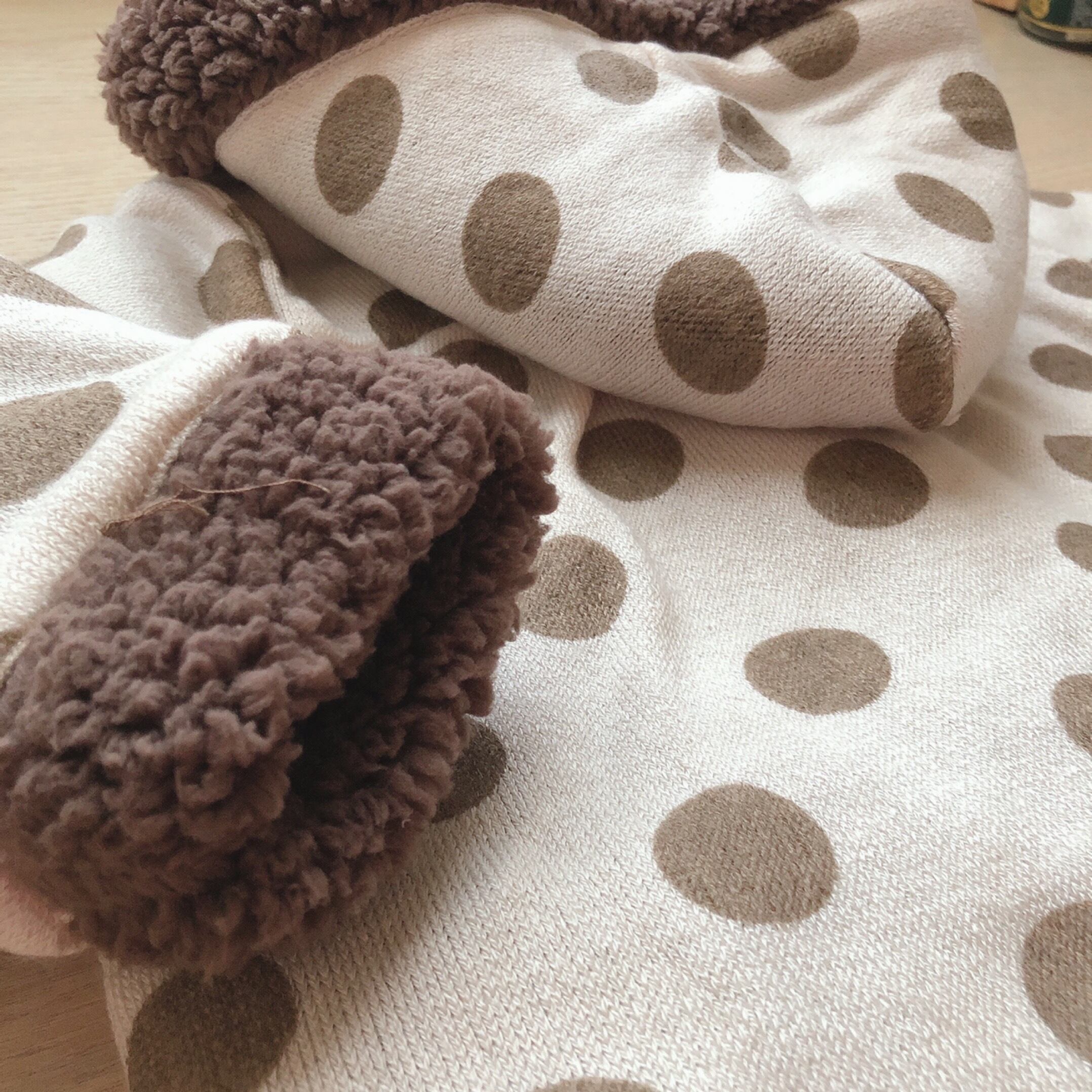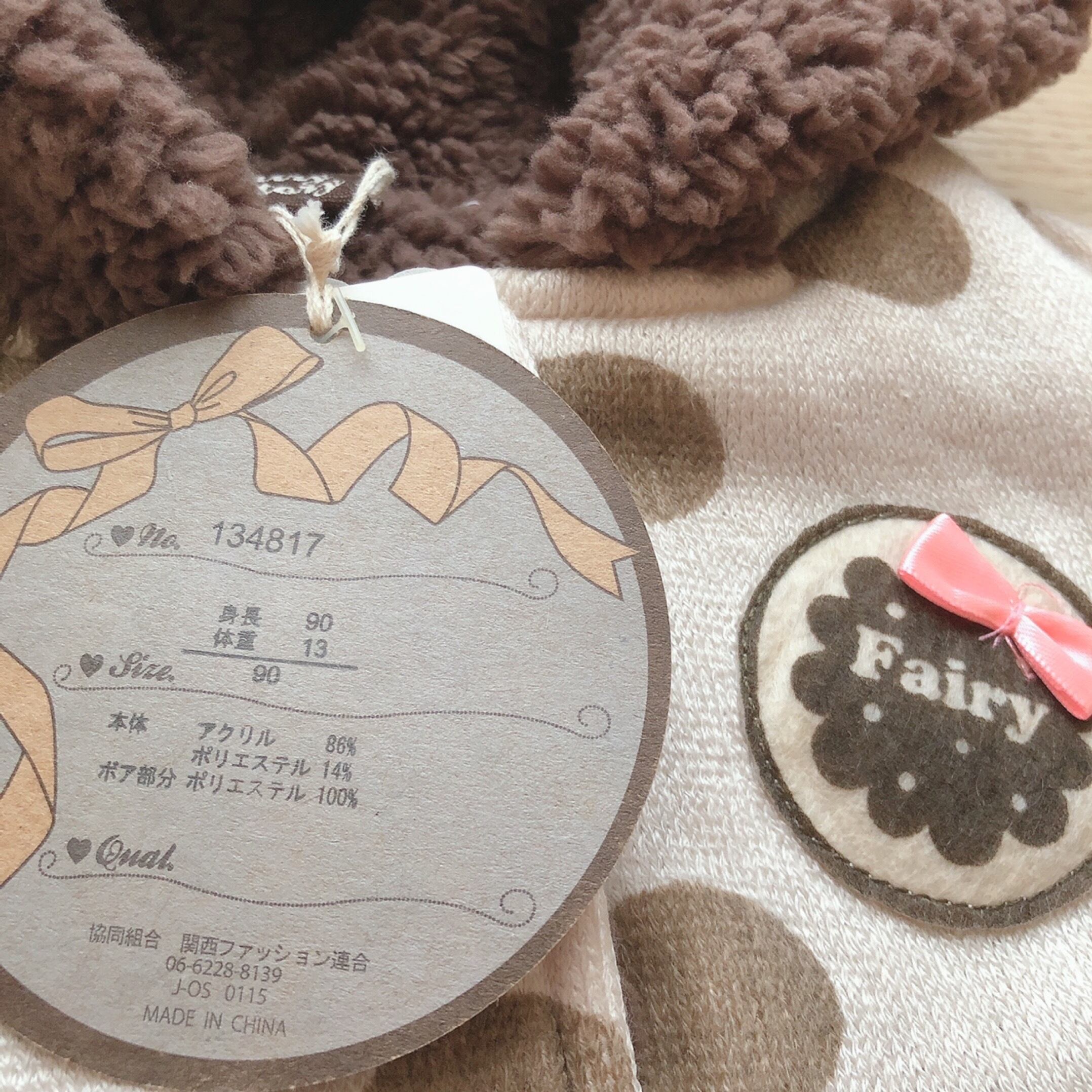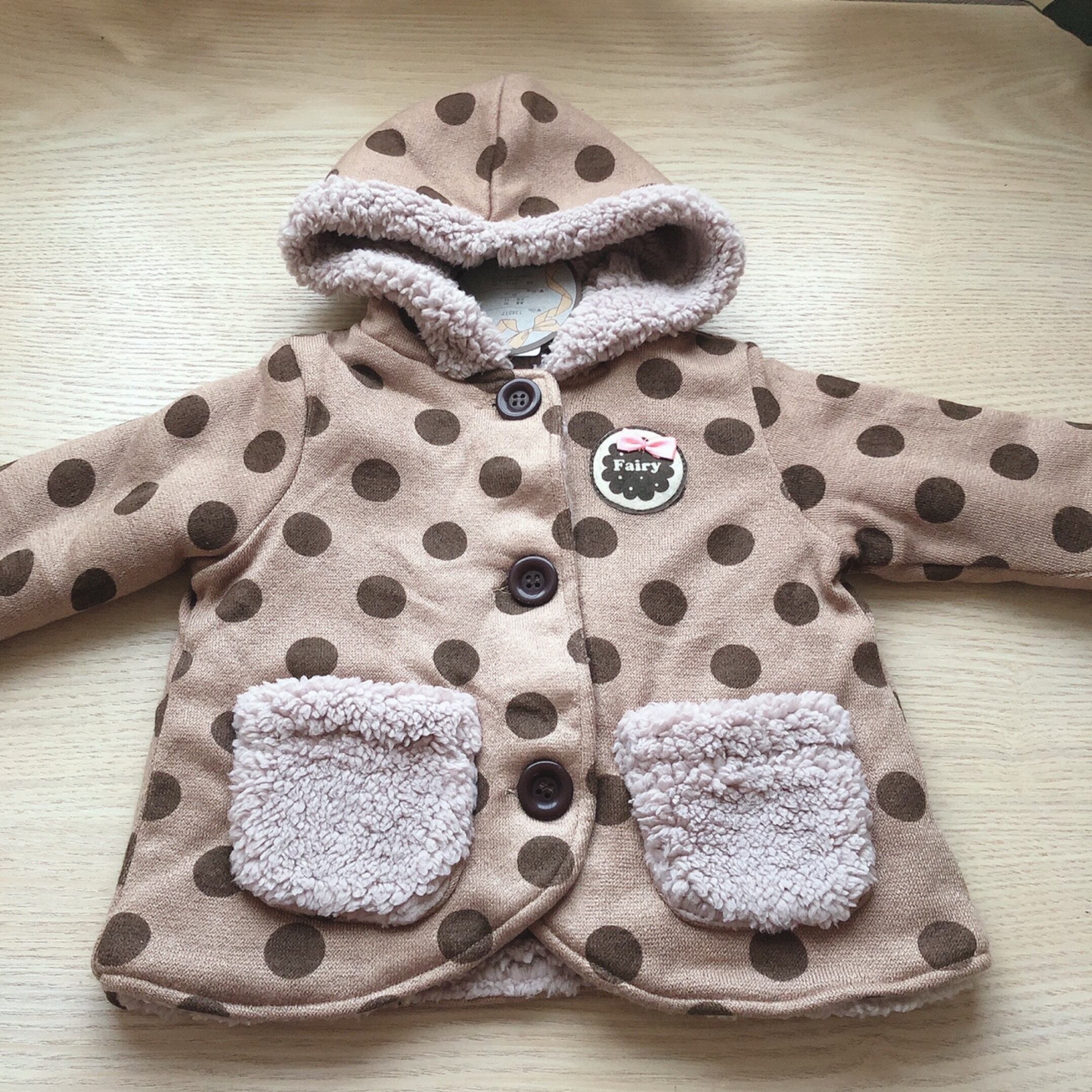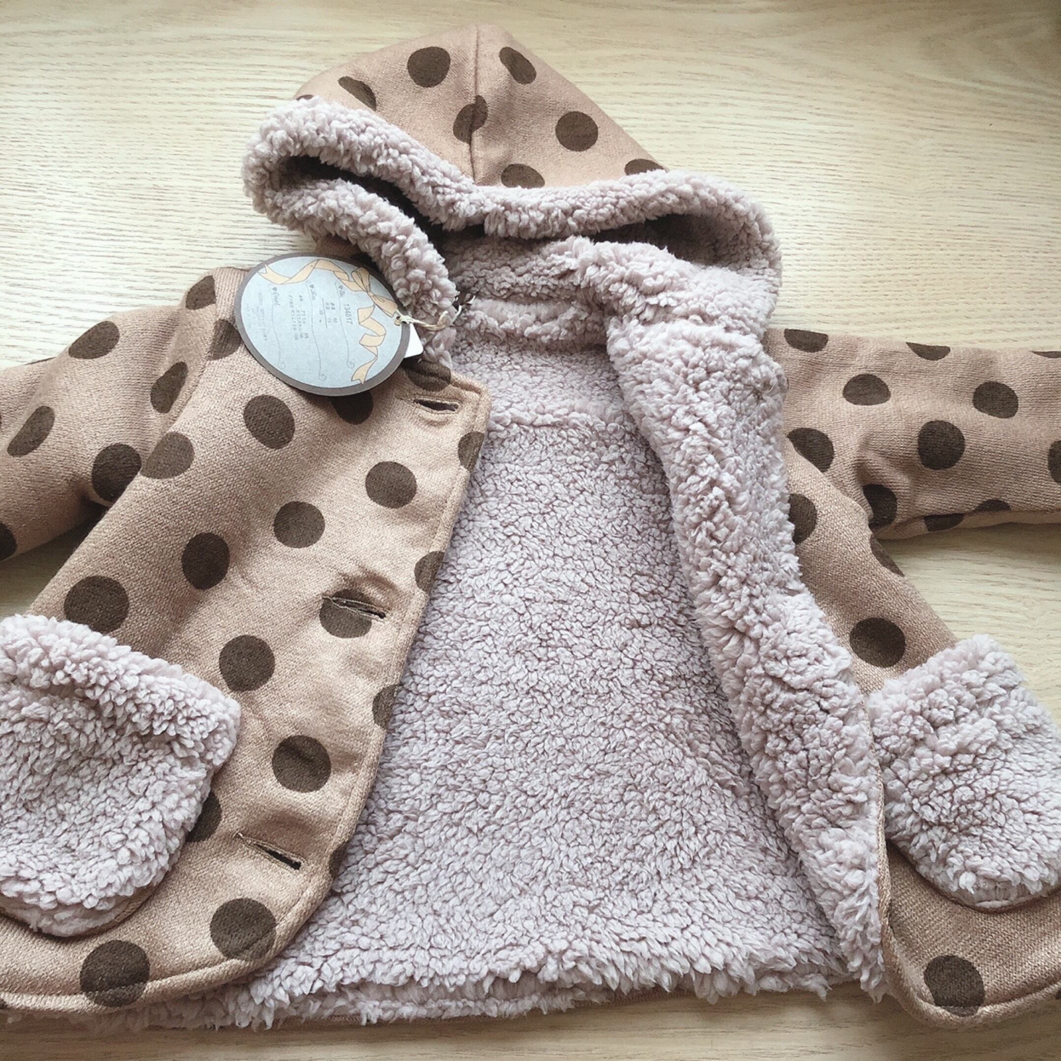 フード付き 裏ボア ドット柄 ベビーアウター 90cm/95cm ブラウン・オフホワイト もこもこ 防寒 上着 秋冬 ベビー服