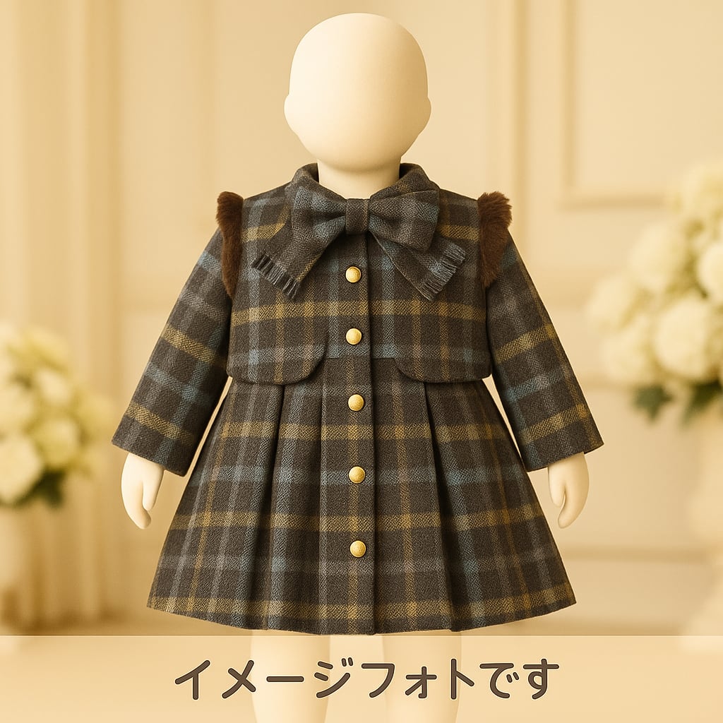 高級 キッズ ワンピース|チェック柄×ベスト付き|ウール素材 総裏地|100サイズ|卒園式・入園式・フォーマル