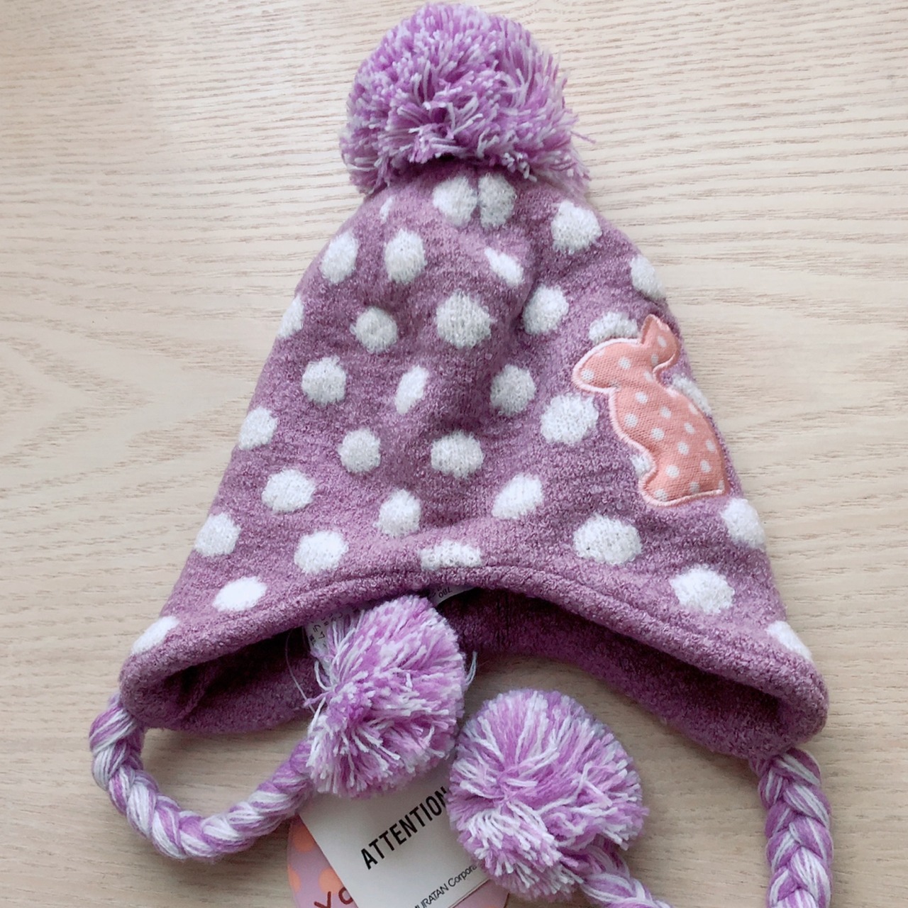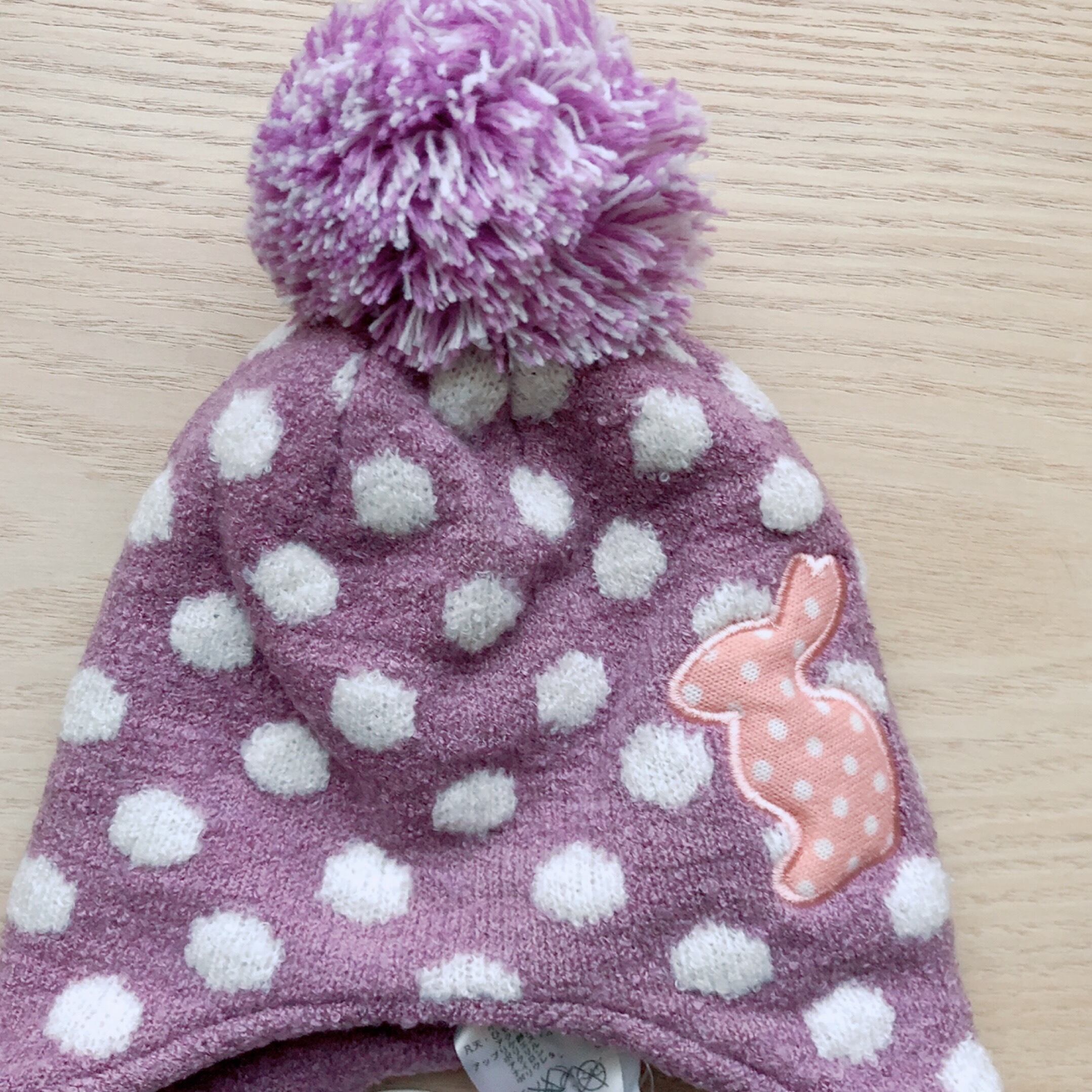 • 特徴:耳あて付き・うさぎアップリケ・ふわふわポンポンデザイン