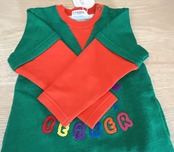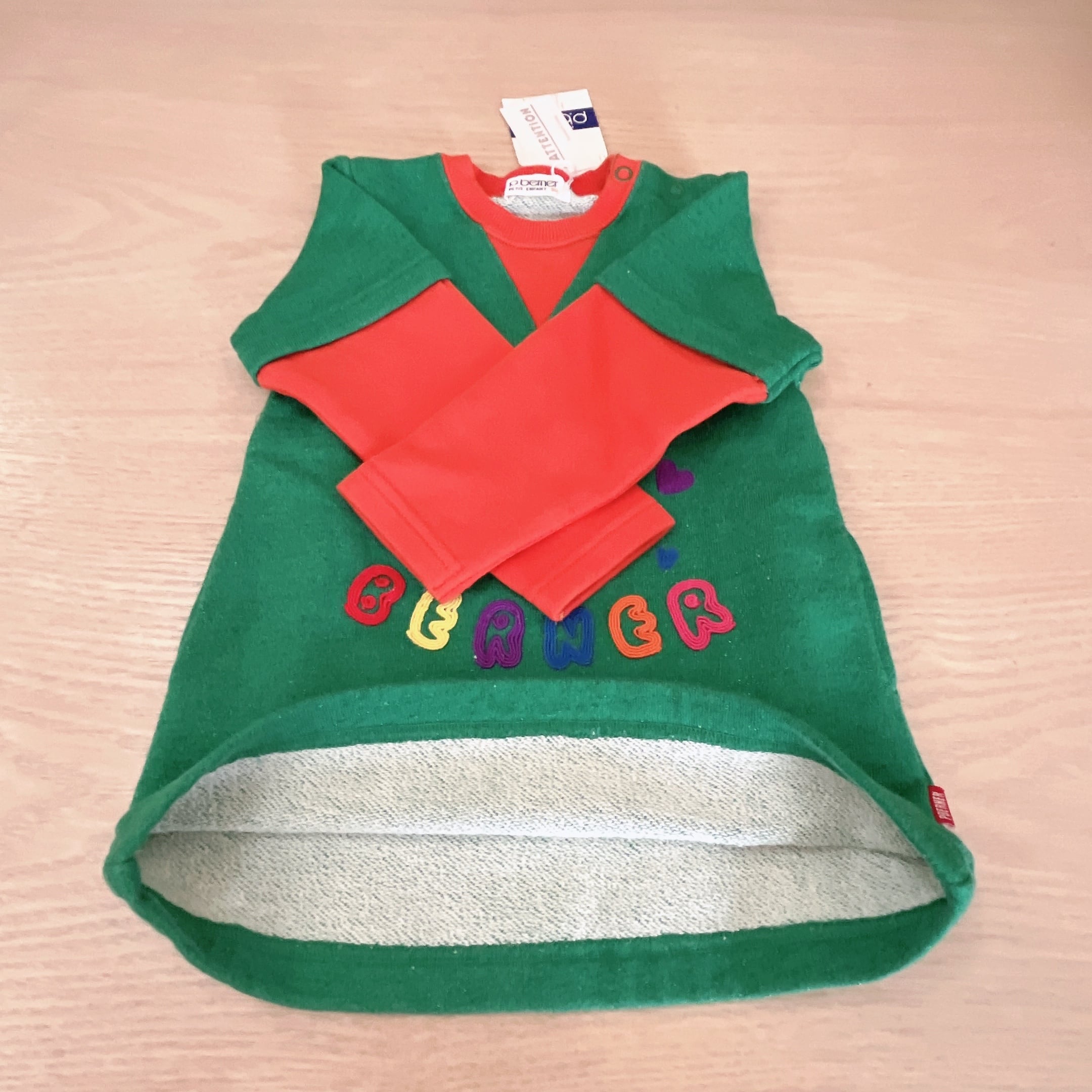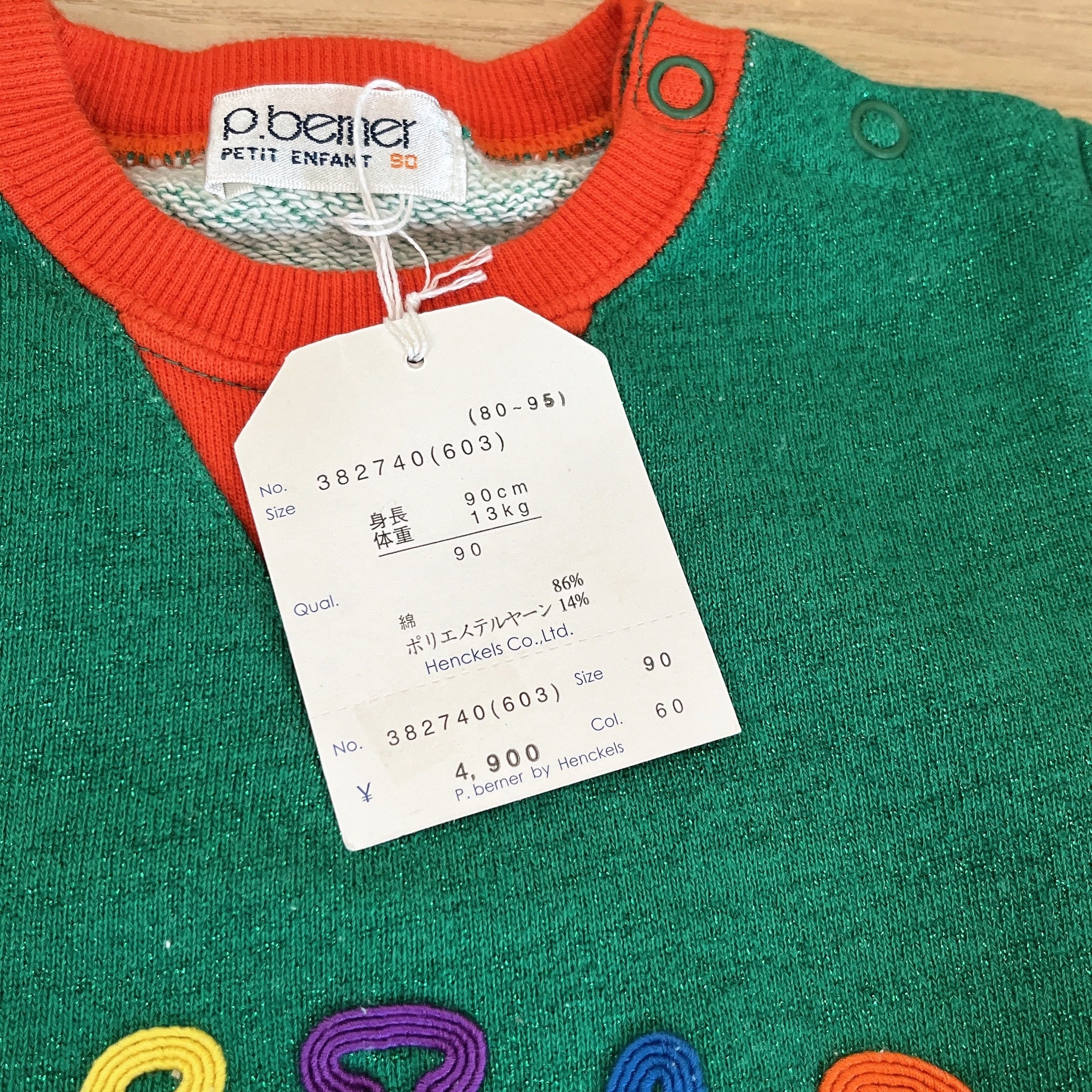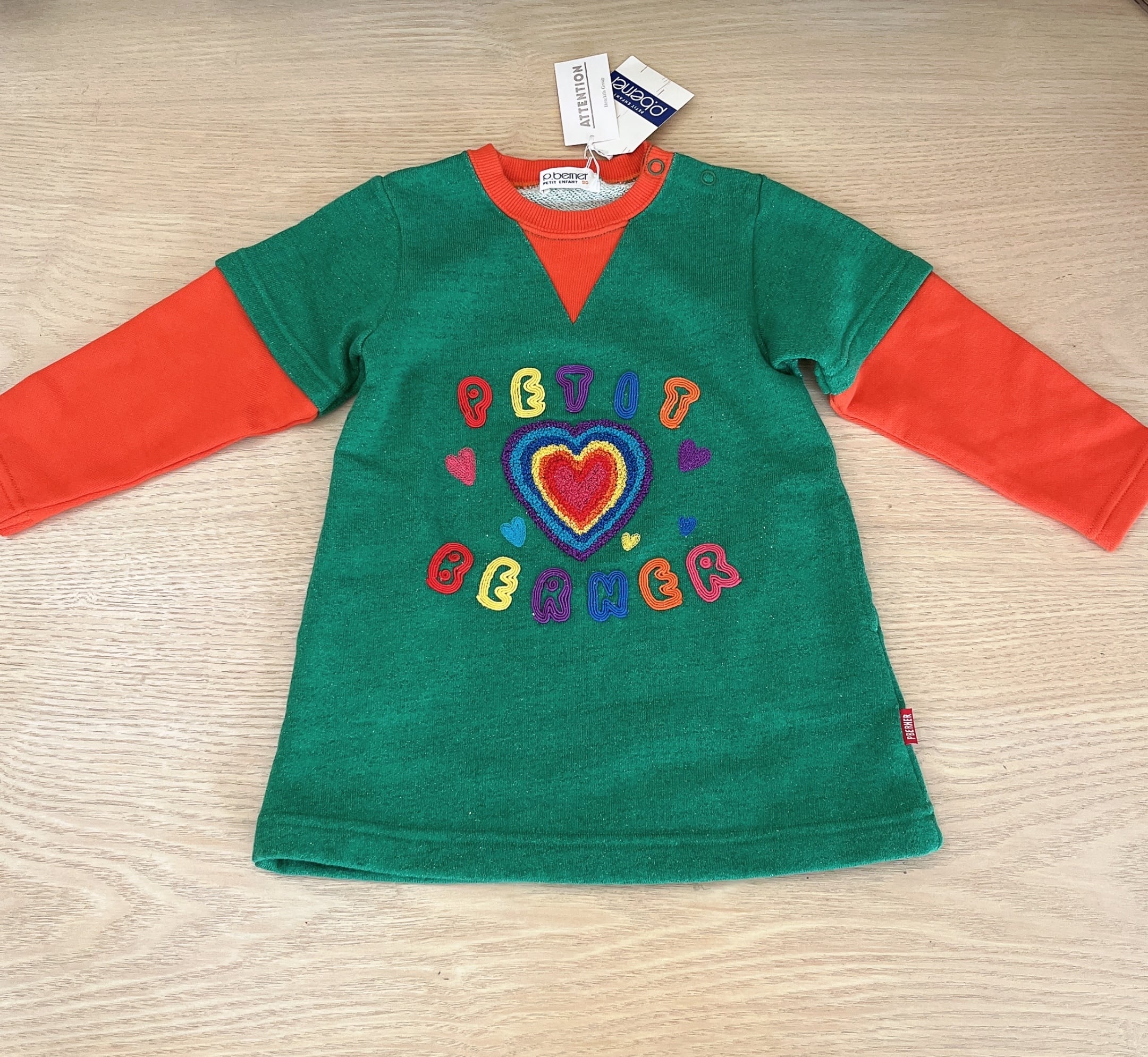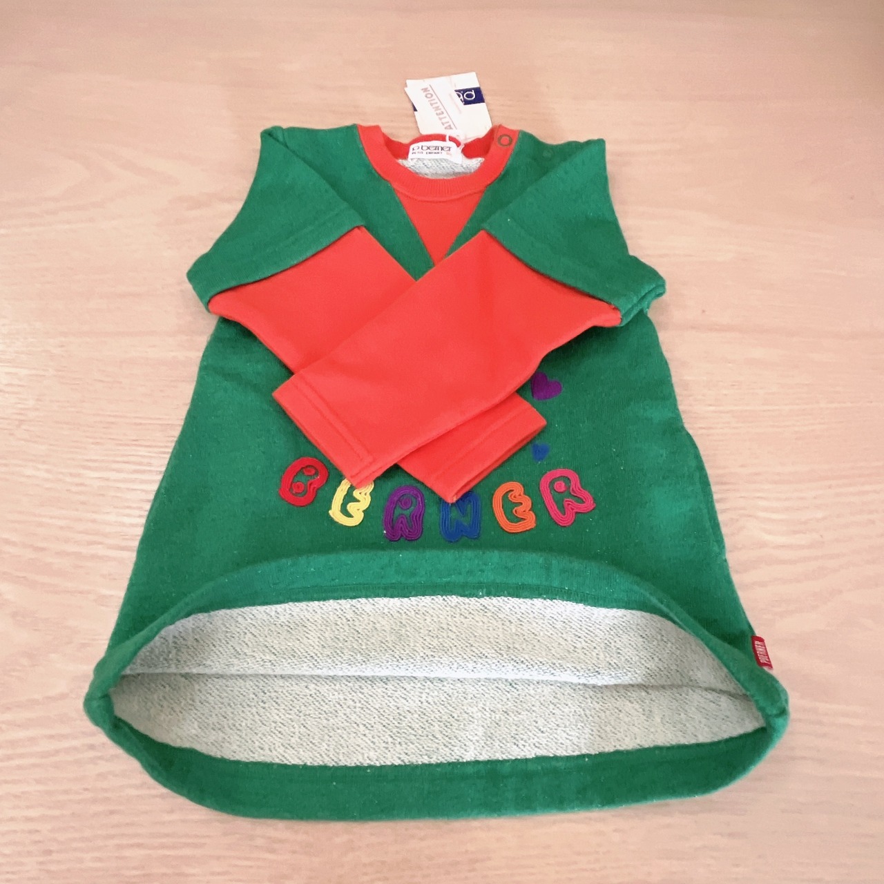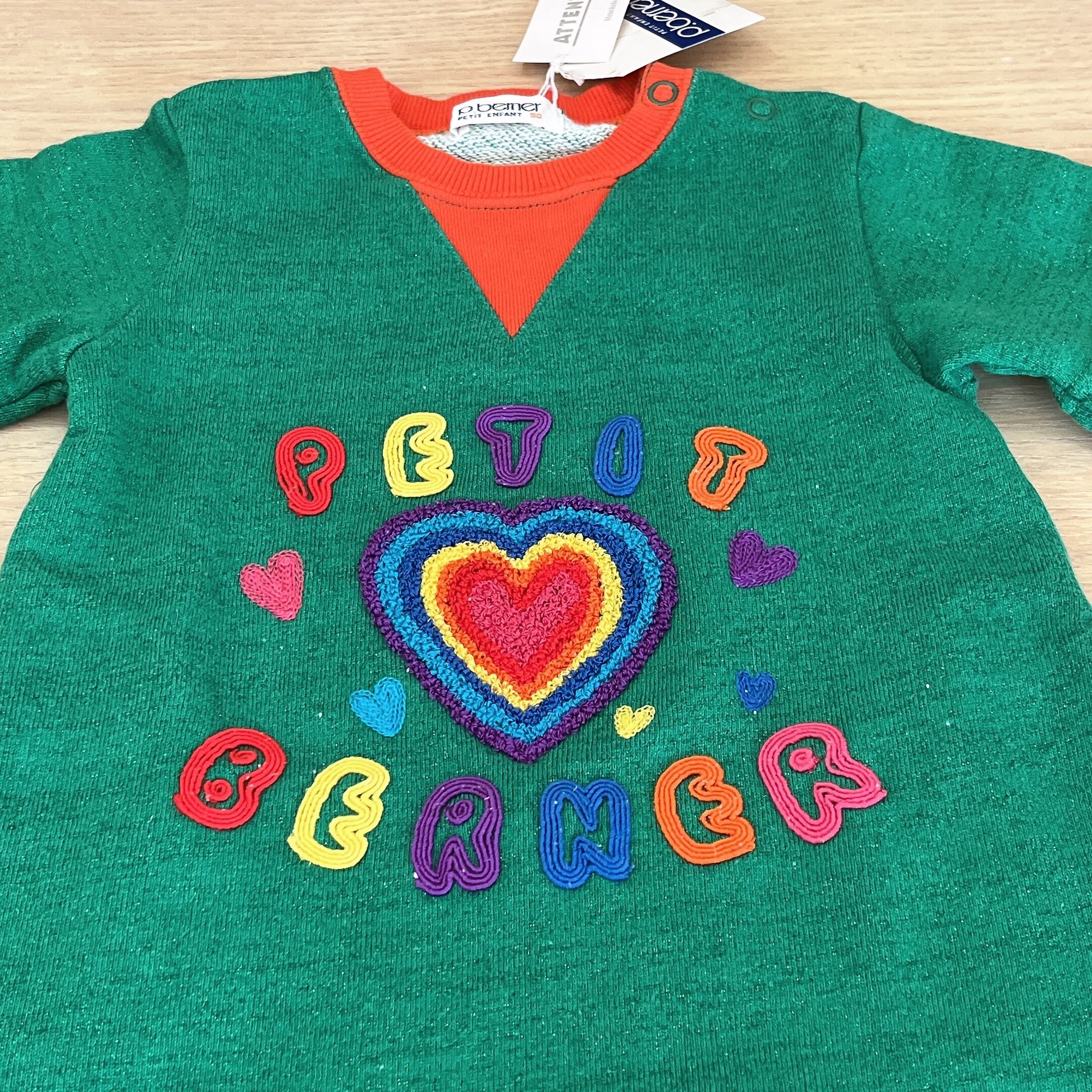 日本製 ラメ入り刺繍 チュニック 90 ハートモチーフ 長袖 バイカラー グリーン ベビー キッズ 女の子